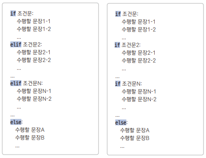 아래를 참고하여, if ~ if 조건문과 if ~ elif 조건문의 차이점을 설명하세요