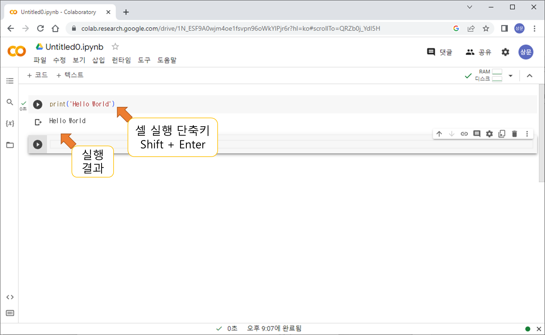 5. 코랩 소스코드 실행