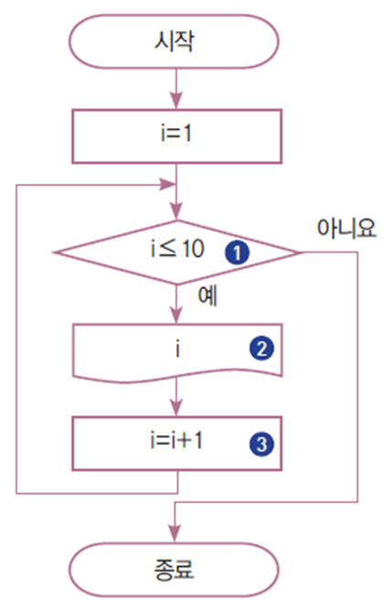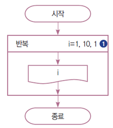 - i 값이 1부터 1씩 증가하며 10이 될 때까지 반복합니다.