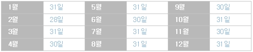 - 서력 기원 연수가 4, 100, 400으로 나누어 떨어지는 해는 윤년으로 둔다. (2000년, 2400년...)