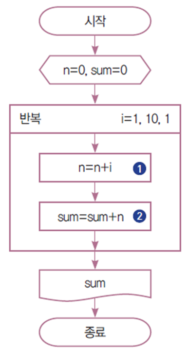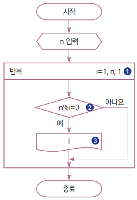 - i 값이 1부터 1씩 증가하며 n이 될 때까지 반복한다.