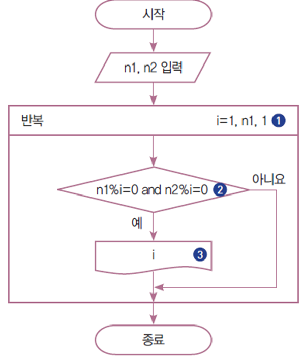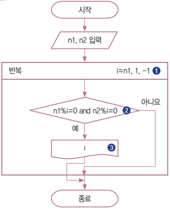 n1과 n2의 공약수는 1부터 n1까지 1씩 증가하는 i로 n1과 n2 모두를 나누어떨어지게 하는수가 된다.