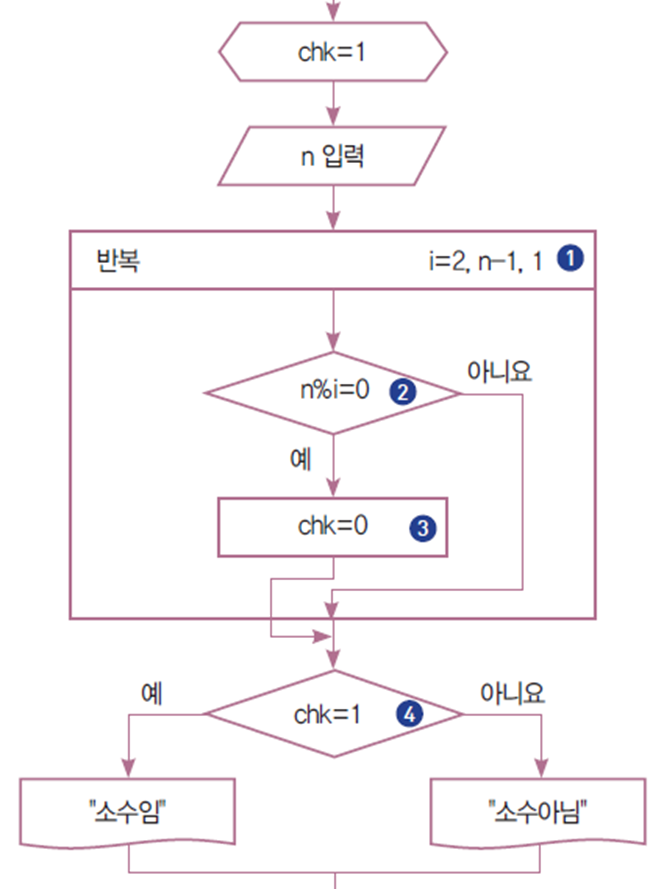 1부터 자기 자신까지의 수로 차례로 나누어서 나누어떨어지는 경우가 2번 발생하면 이 수는 소수이고, 그렇지 않으면 소수가 아니다. 이 방법을 이용해서 소수를 판별하는 순서도와 파이썬 프로그램을 작성하여라.