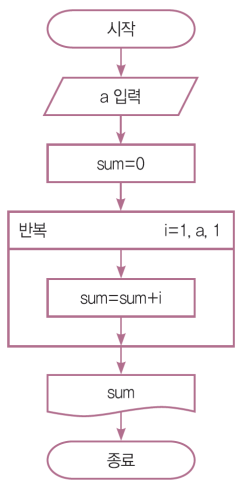 1부터 "입력받은 수"까지의 합을 출력하는 순서도와 파이썬 프로그램을 작성하여라.