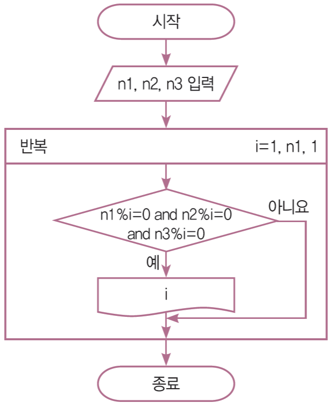 세 수의 공약수를 출력하는 순 과제 서도와 파이썬 프로그램을 작성하여라.