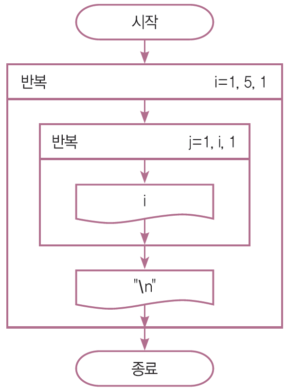 다음과 같이 출력하는 순서도와 파이썬 프로그램을 작성하여라.