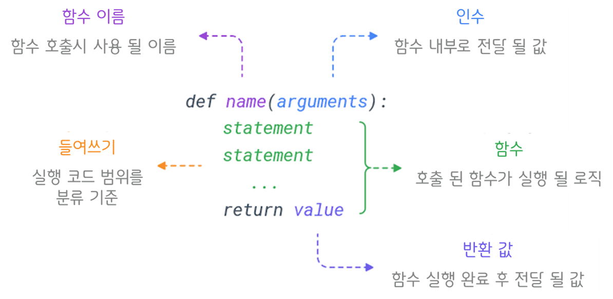 def, 함수이름, ( ) 괄호, : 콜론을 쓰고,