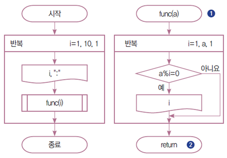 임의의 수에 대한 약수 구하는 func 함수를 이용해서 1부터 10까지의 수에 대한 약수를 구한다.