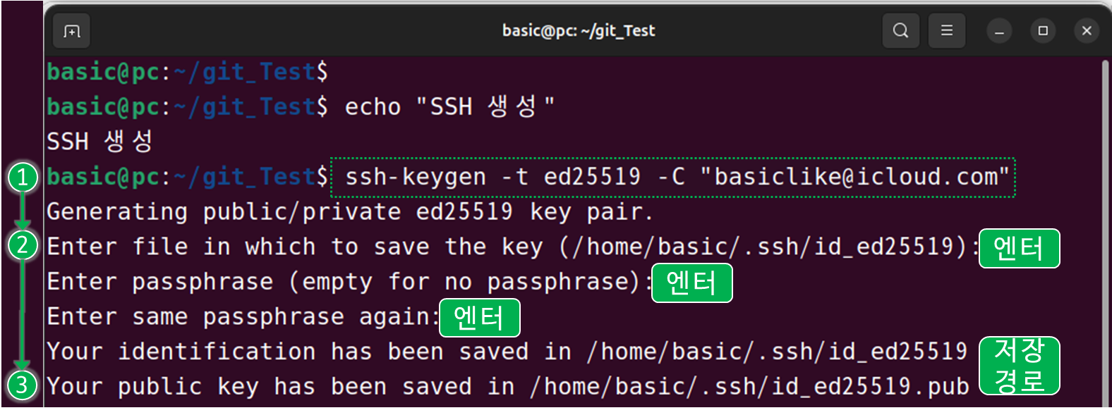ssh-keygen -t ed25519 -C "코멘트. your_email@example.com"