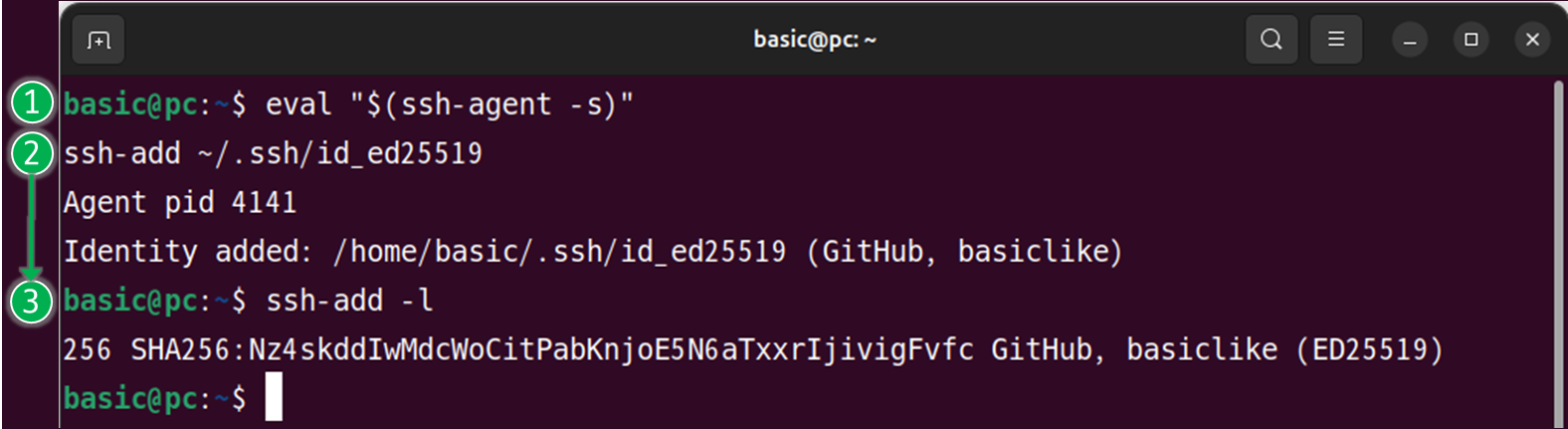 : ssh-agent는 메모리에 개인키를 보관해 등록된 동안은 ssh/git이 비밀번호 없이 사용할 수 있습니다.