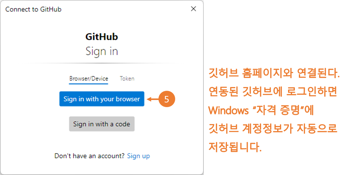 05. GitHub 로그인 창이 뜨면, [Sign in with browser] 를 클릭하고, GitHub 로그인 합니다.