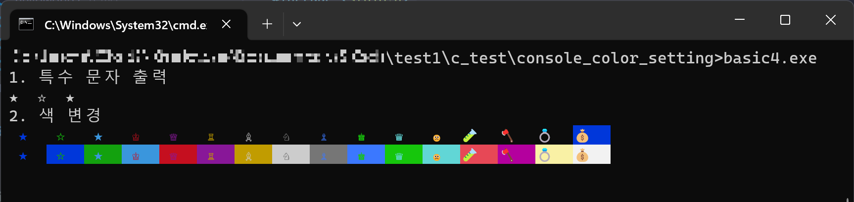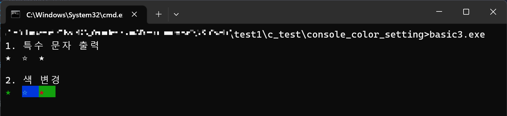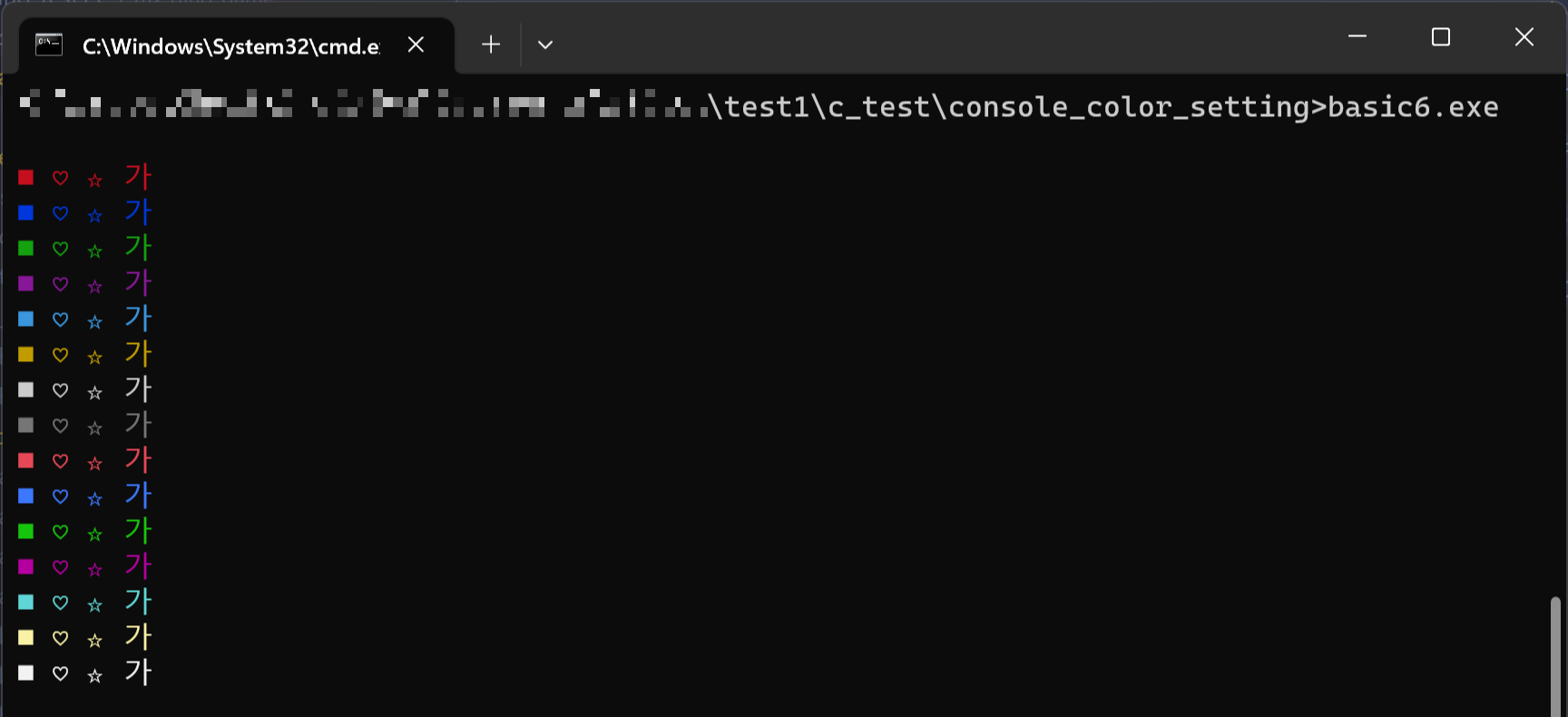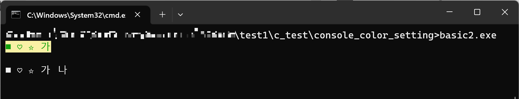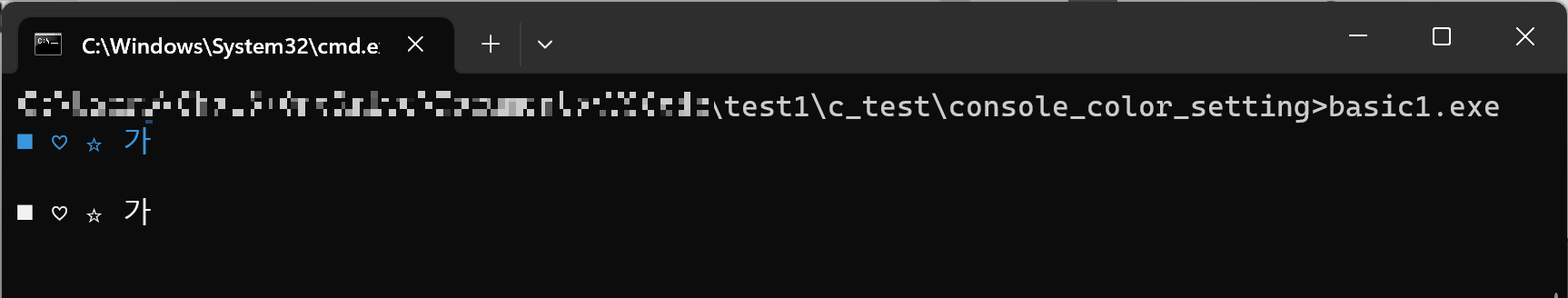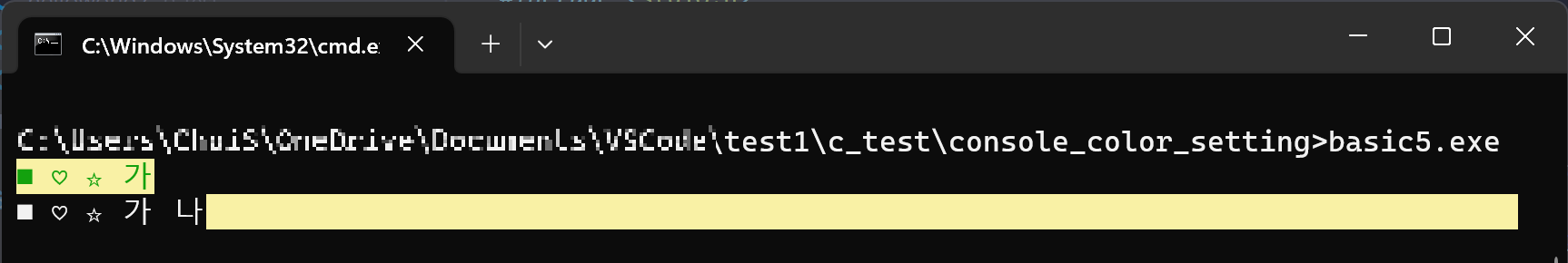 printf("■ ♡ ☆ 가\n"); // 줄바꿈까지 포함, 다음 라인까지 색변경이 진행된다