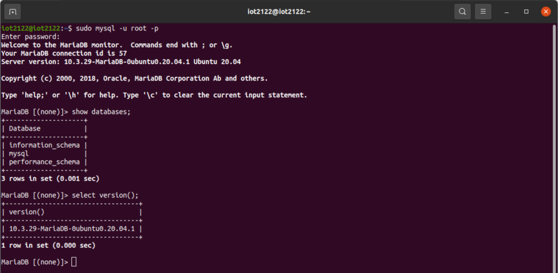 2.5 mariadb의 root(관리자 계정) 비밀번호 설정