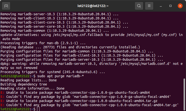 sudo apt purge maria* && sudo apt purge mysql* && sudo apt autoremove