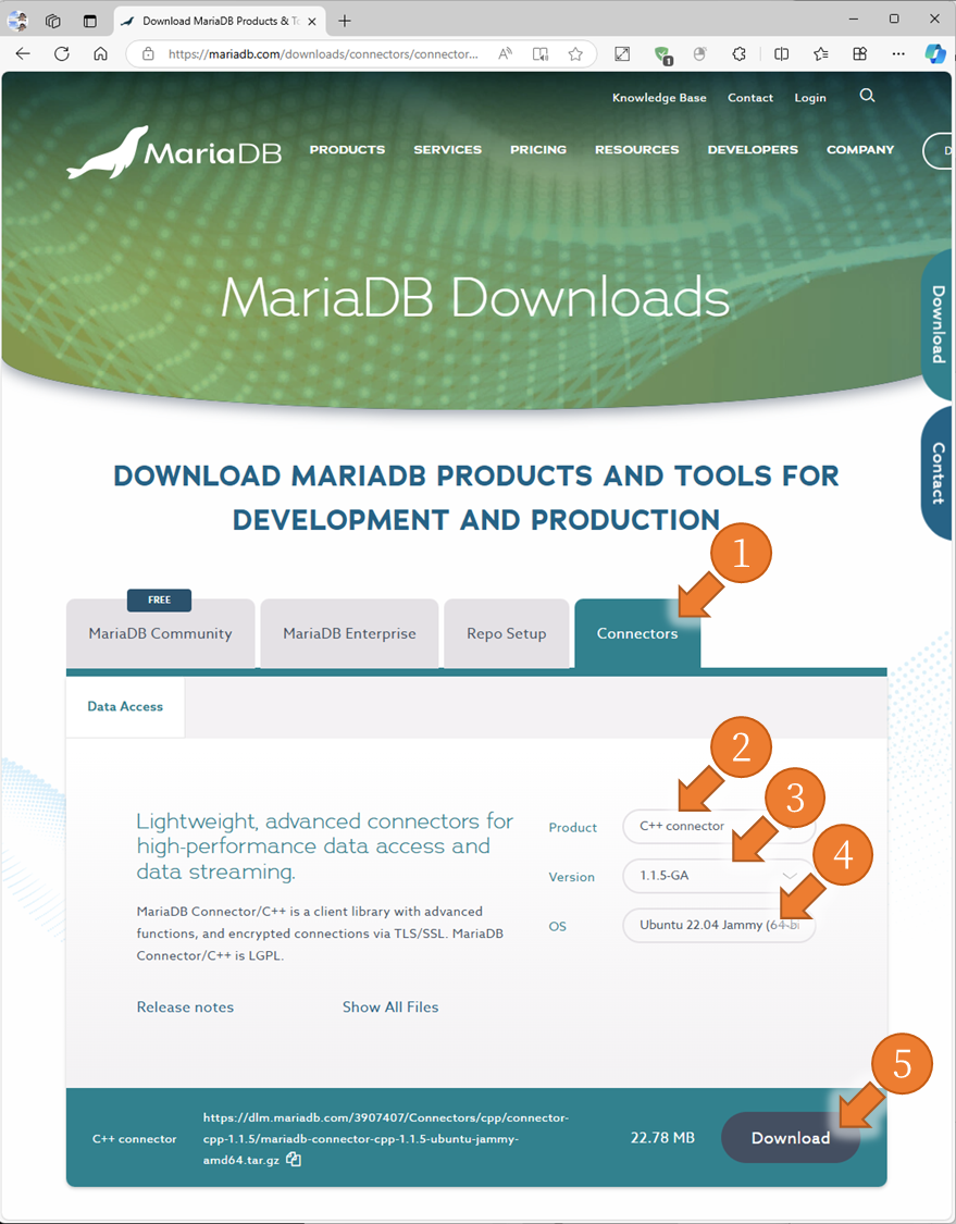 mariadb-connector-cpp-1.1.5-ubuntu-jammy-amd64.tar.gz (2024.09.26 기준)