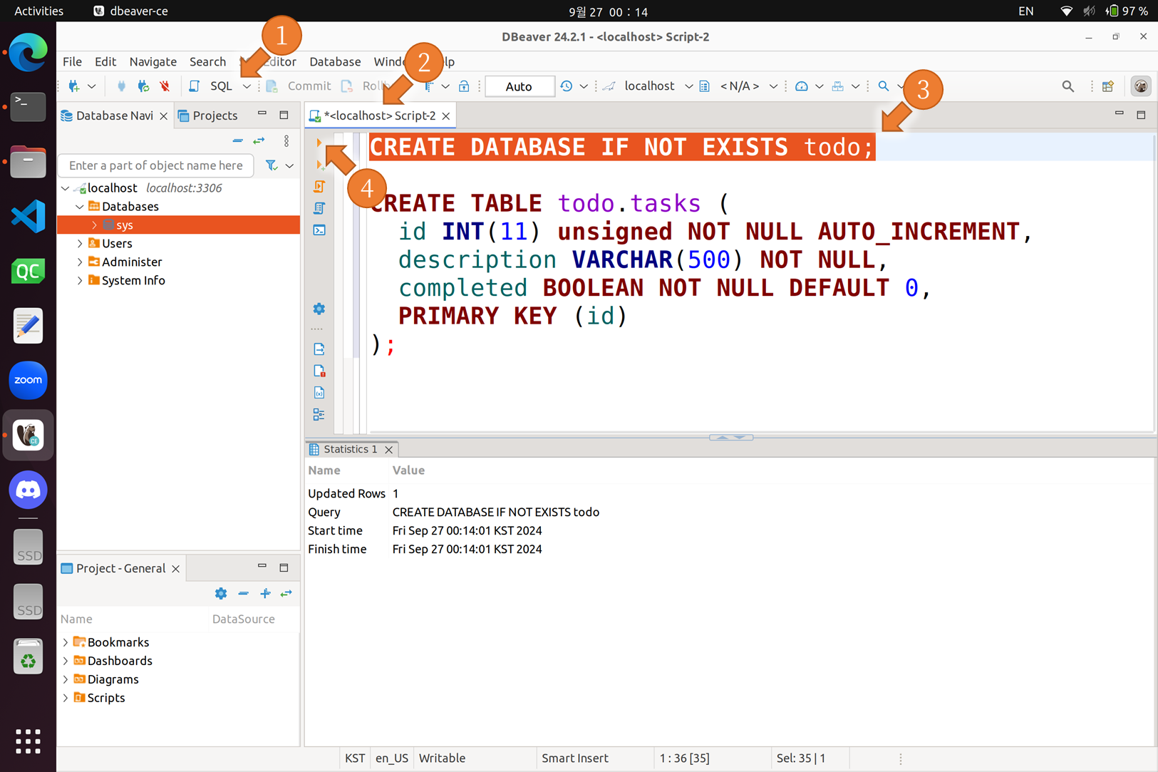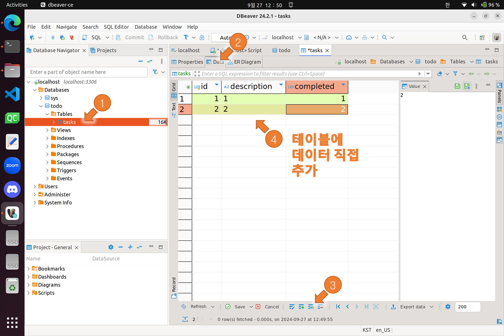DBeaver 에서 MariaDB 테이블과 컬럼 생성 후, 데이터 입력
