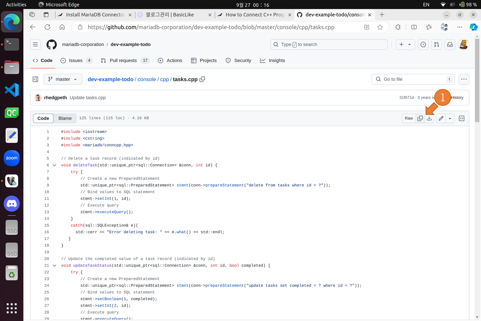 깃허브에서 MariaDB C/C++ 테스트 소스코드 복사