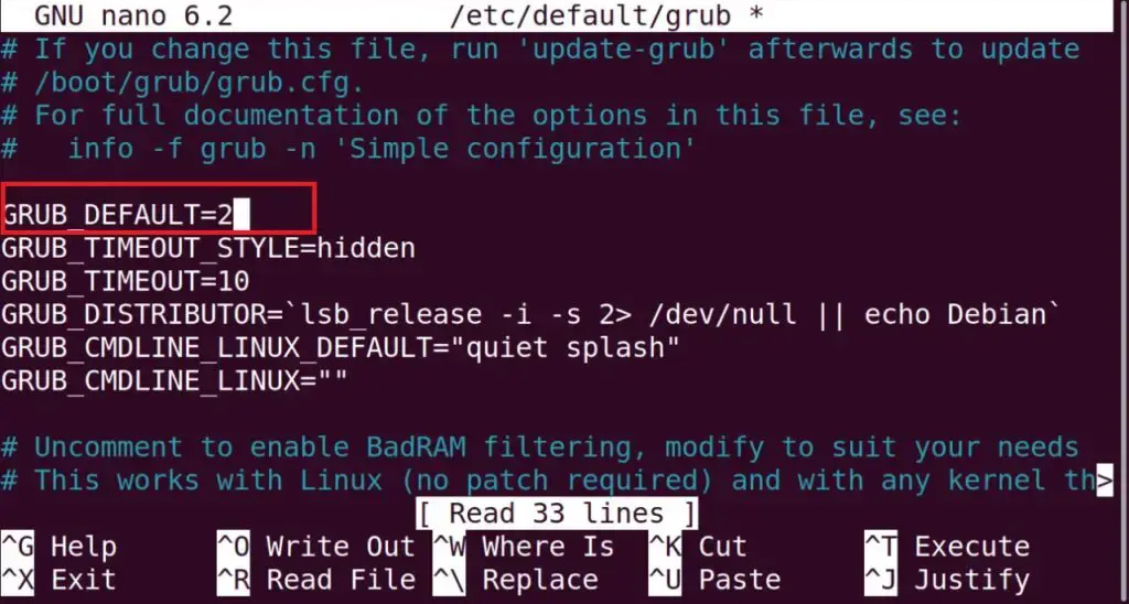 sudo nano /etc/default/grub