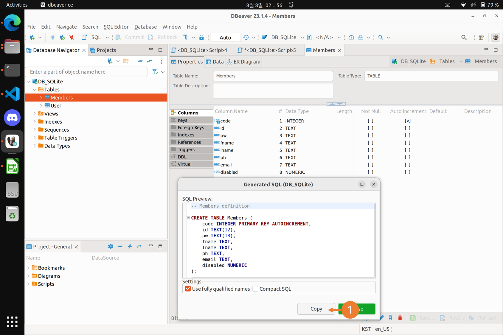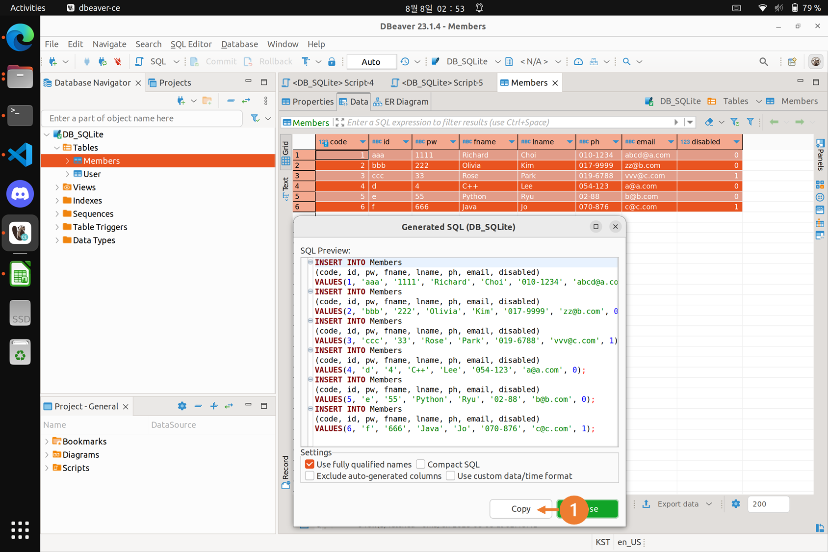 - 생성된 SQL 복사