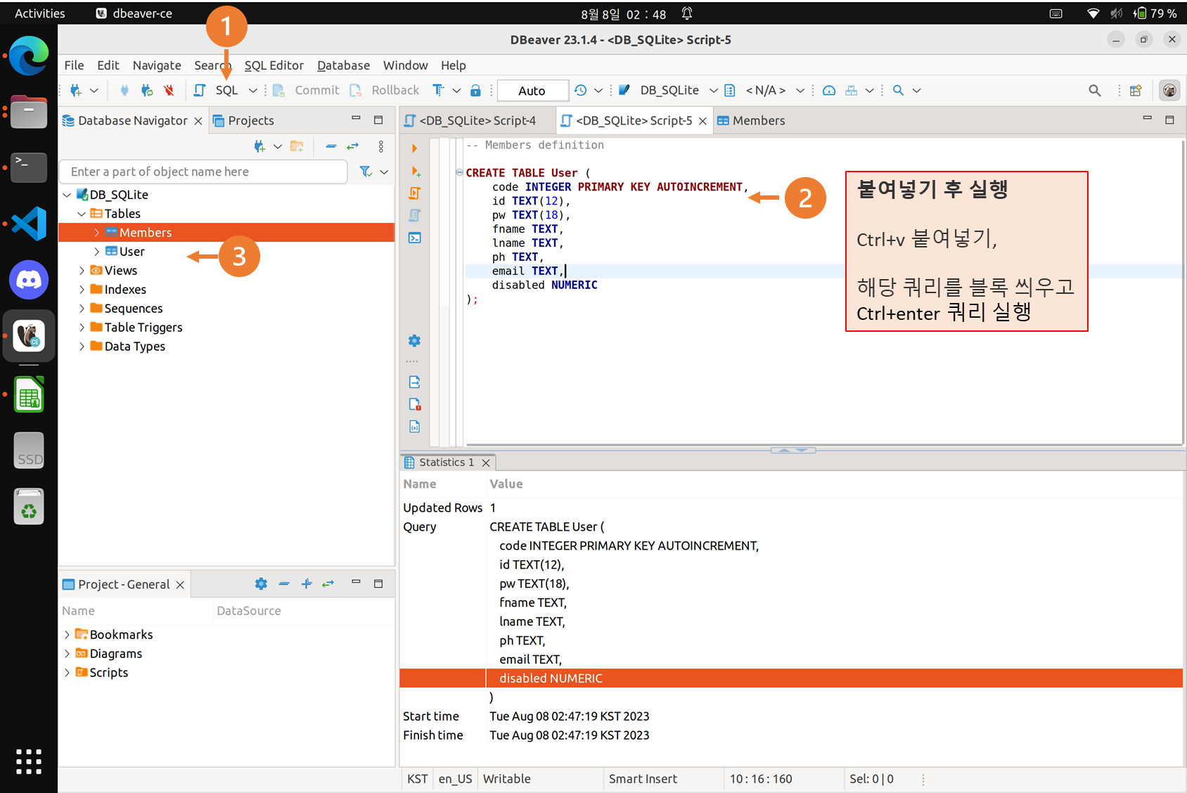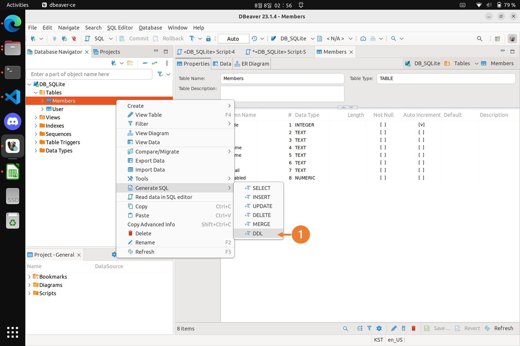 ① DBeaver, Generate SQL, Create로 테이블 추가 생성