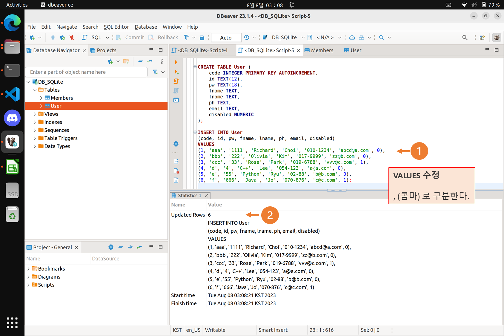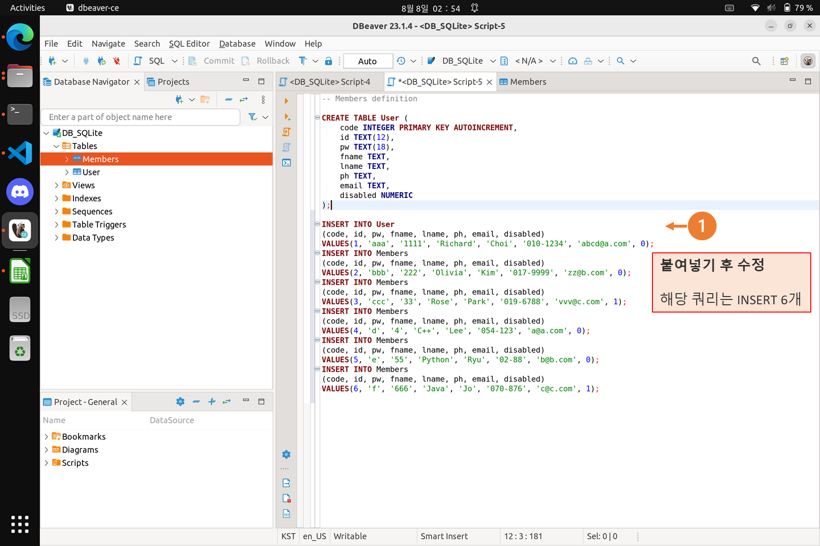 - 붙여넣은 쿼리문 중 VALUES 수정