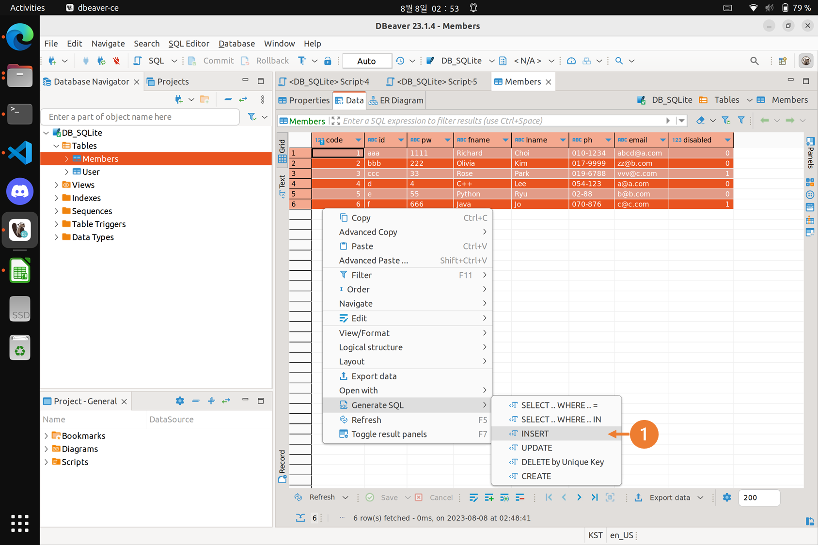 ② DBeaver, Generate SQL, INSERT로 테이블 Values 복사