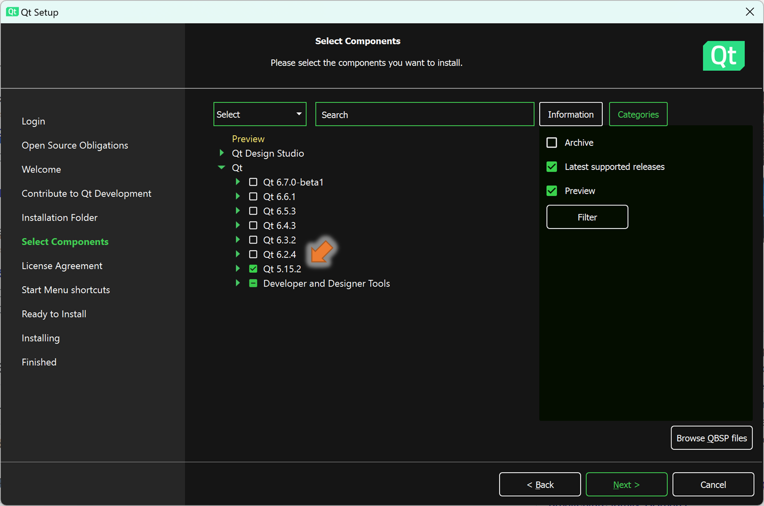 그 외, 특정 버전을 선택하는 경우 (Qt 5.15.2)
