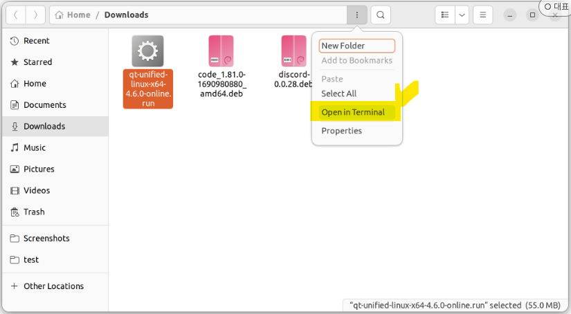 보통 Downloads 폴더에 해당 실행 파일을 다운 받았을 것이다.