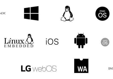 MS Windows, MacOS, Android, iOS, Embedded Linux, QNX, 등에서 모두 호환되는 크로스플랫폼 프레임워크로 운영체제마다 프로그램을 따로 개발하지 않아도 된다.