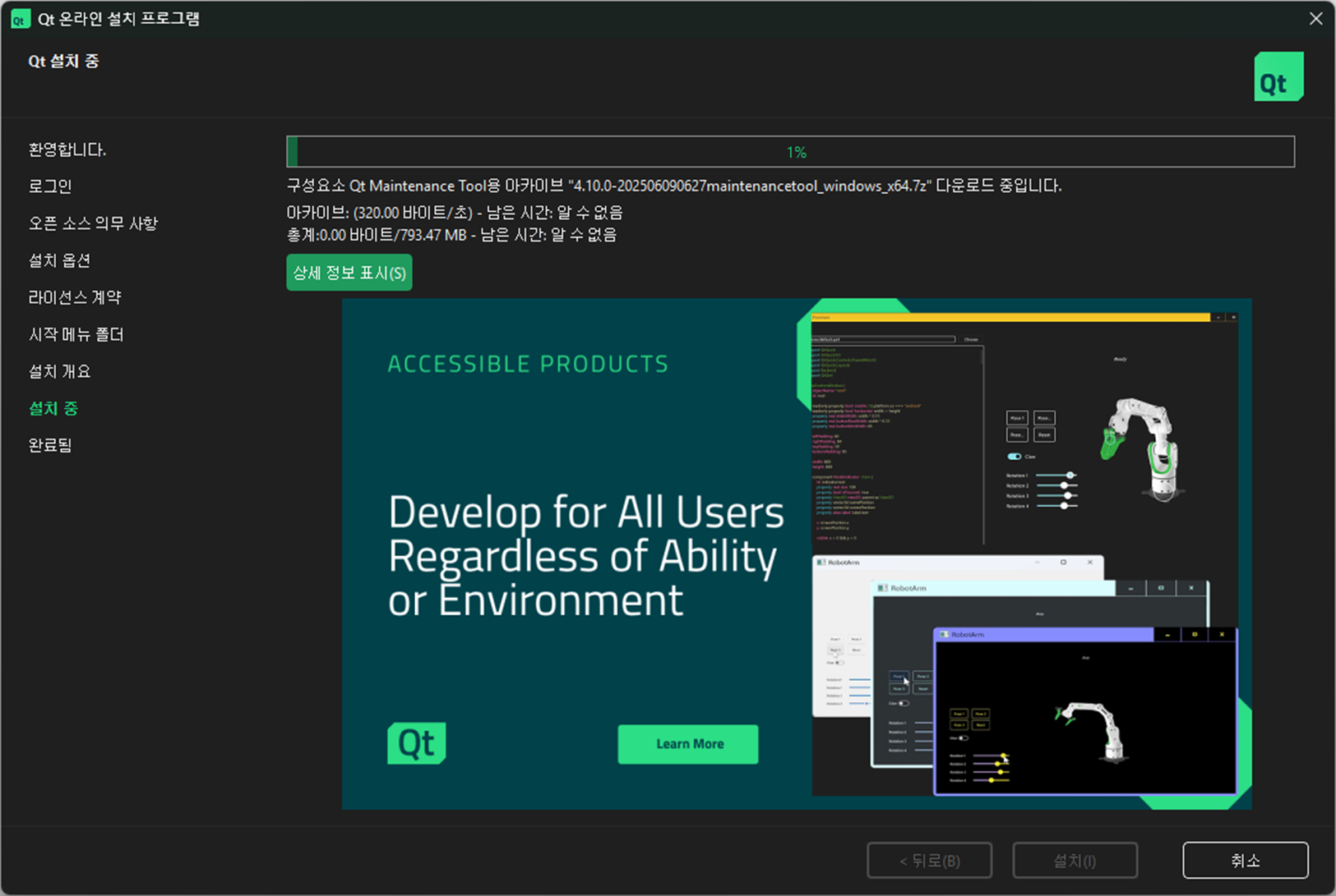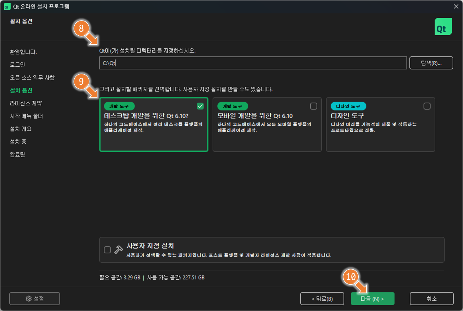 3. Qt Online Installer 단계별 따라하기 - Qt 6.10