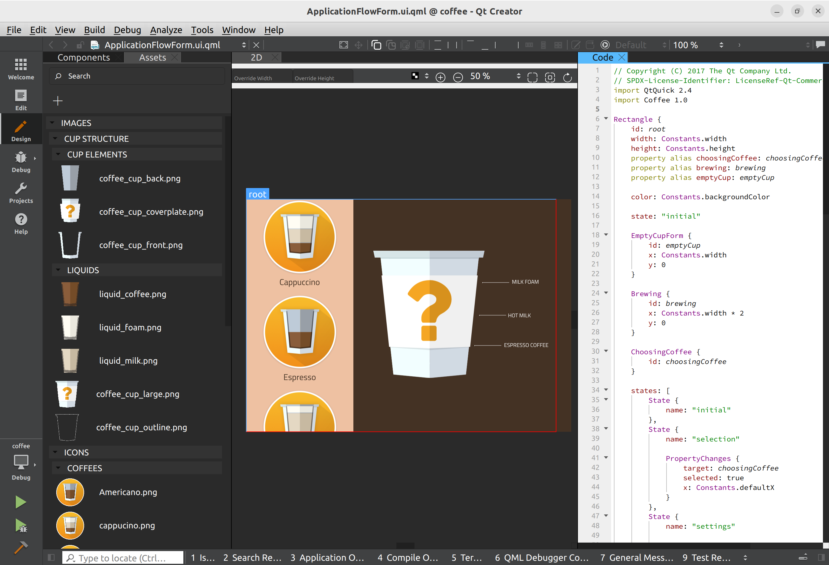- Examples > Application Examples >Coffee Machine Project