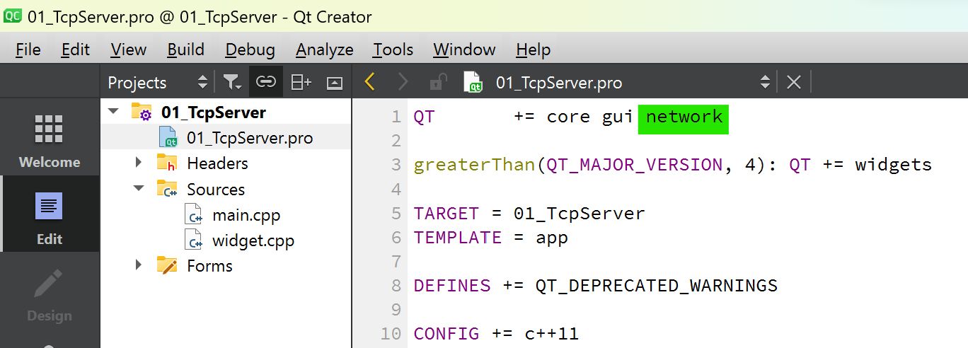Qt 에서 제공하는 네트워크 모듈을 사용하기 위해서는 다음과 같이추가해야 한다.
