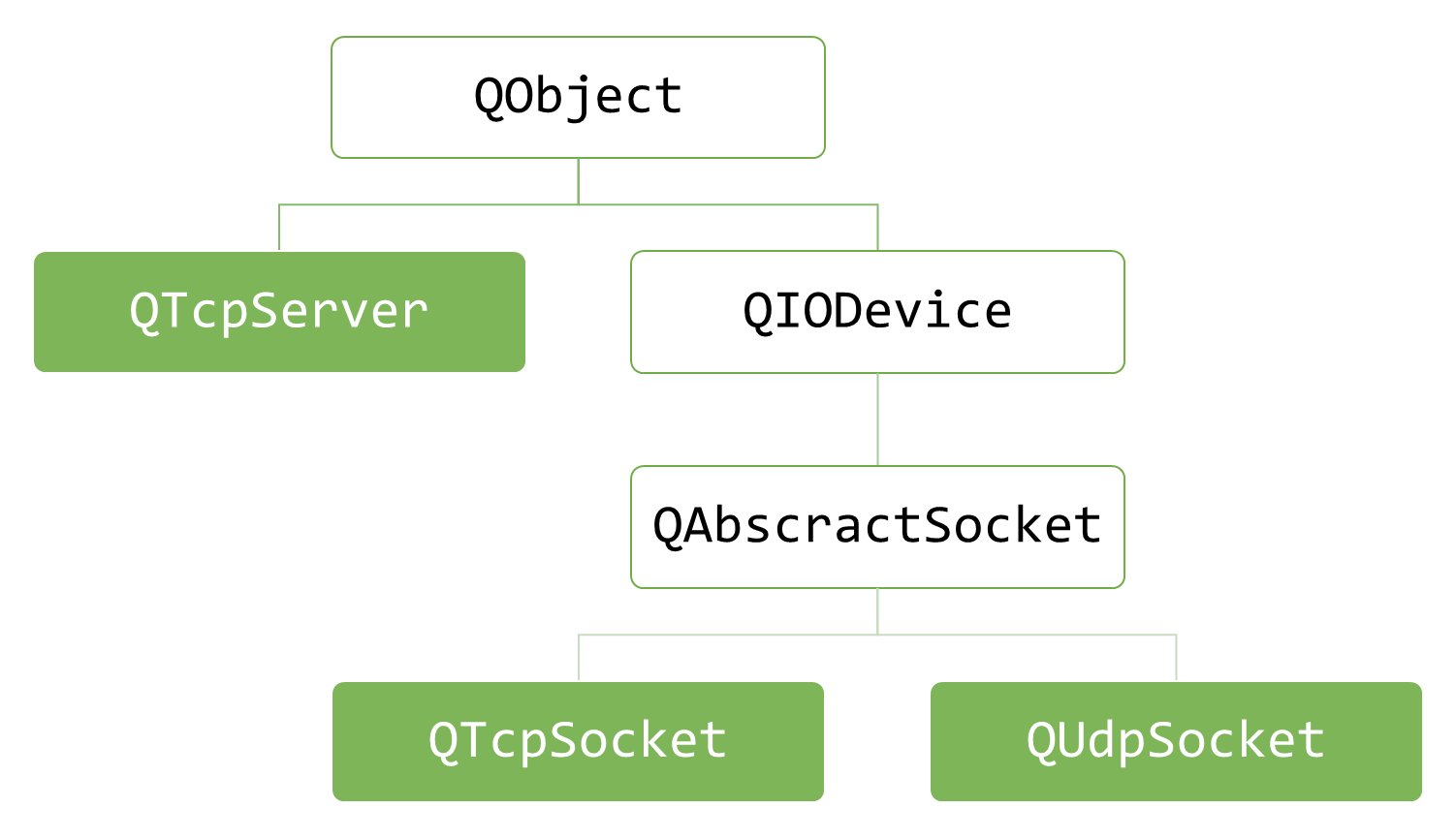 QTcpSocket 클래스와 QUdpSocket 클래스는 QAbstracktSocket 클래스로부터 상속받아 구현 되었다.