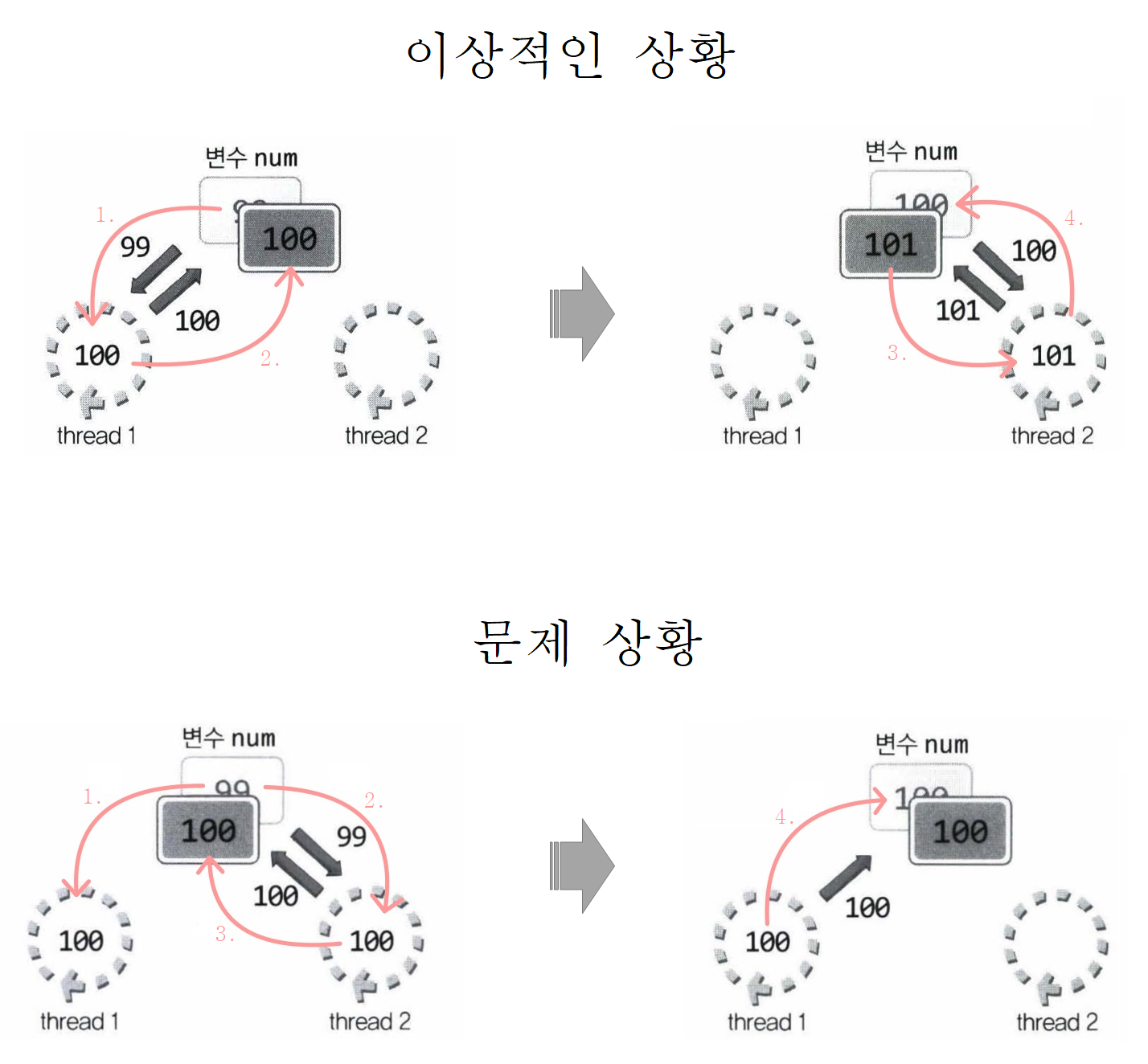 Thread 가 많이 사용 될수록 프로그램 소스코드의 복잡성도 높아지며 유지보수도 어려워 진다.