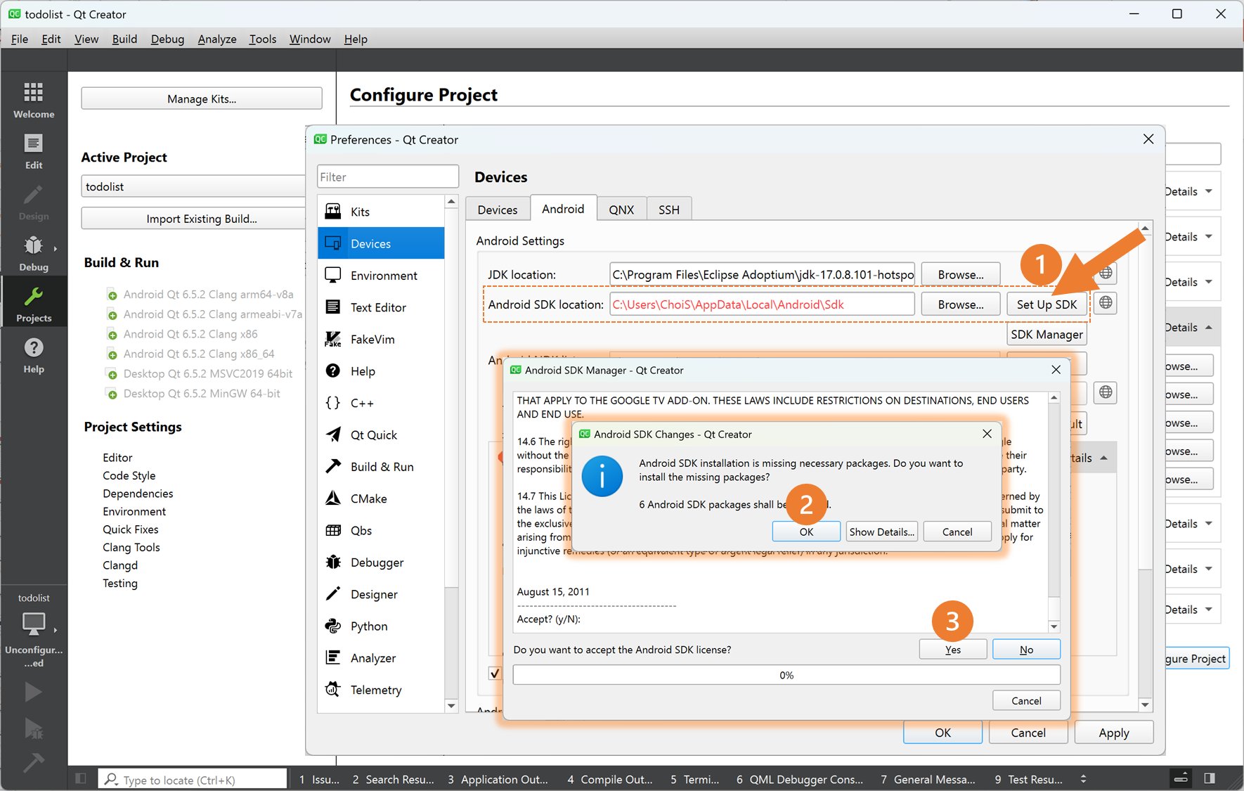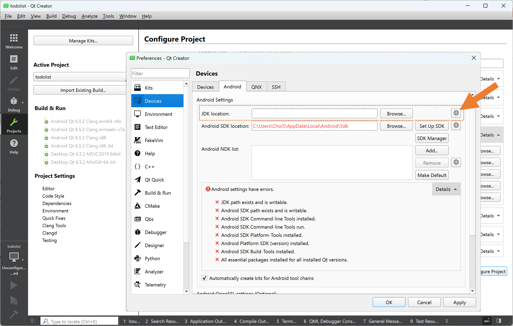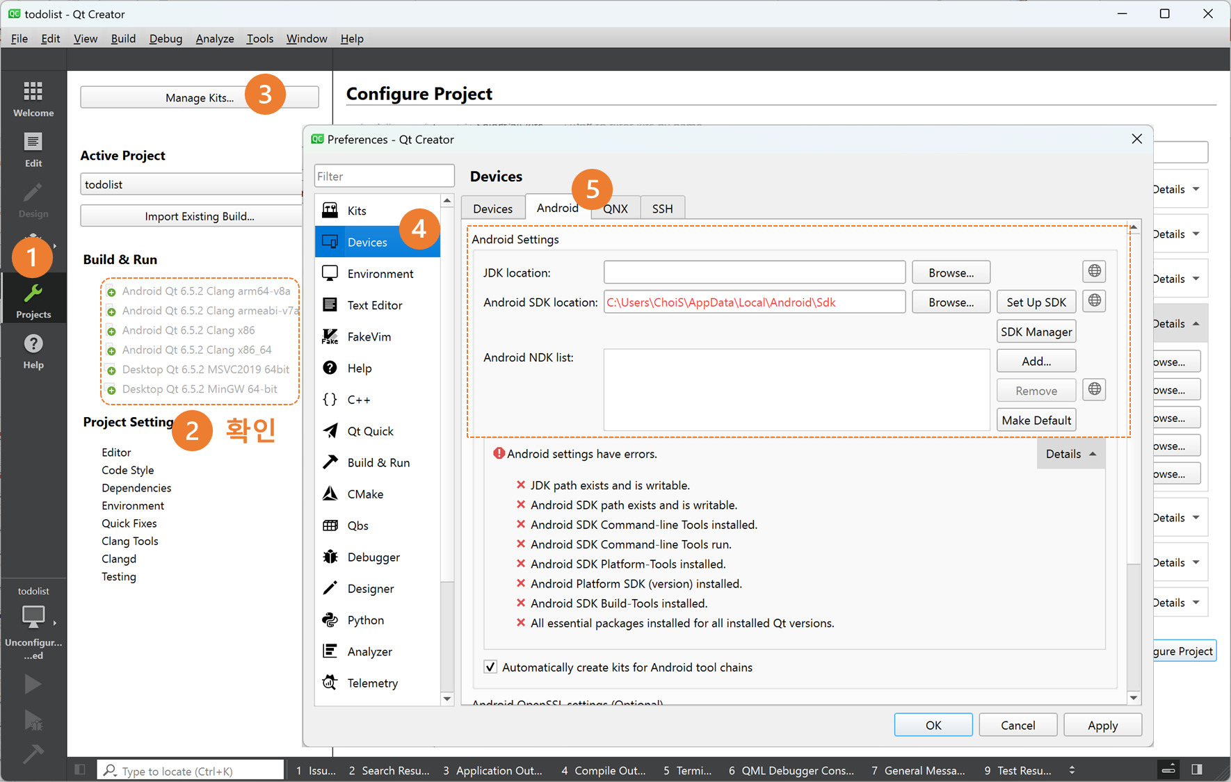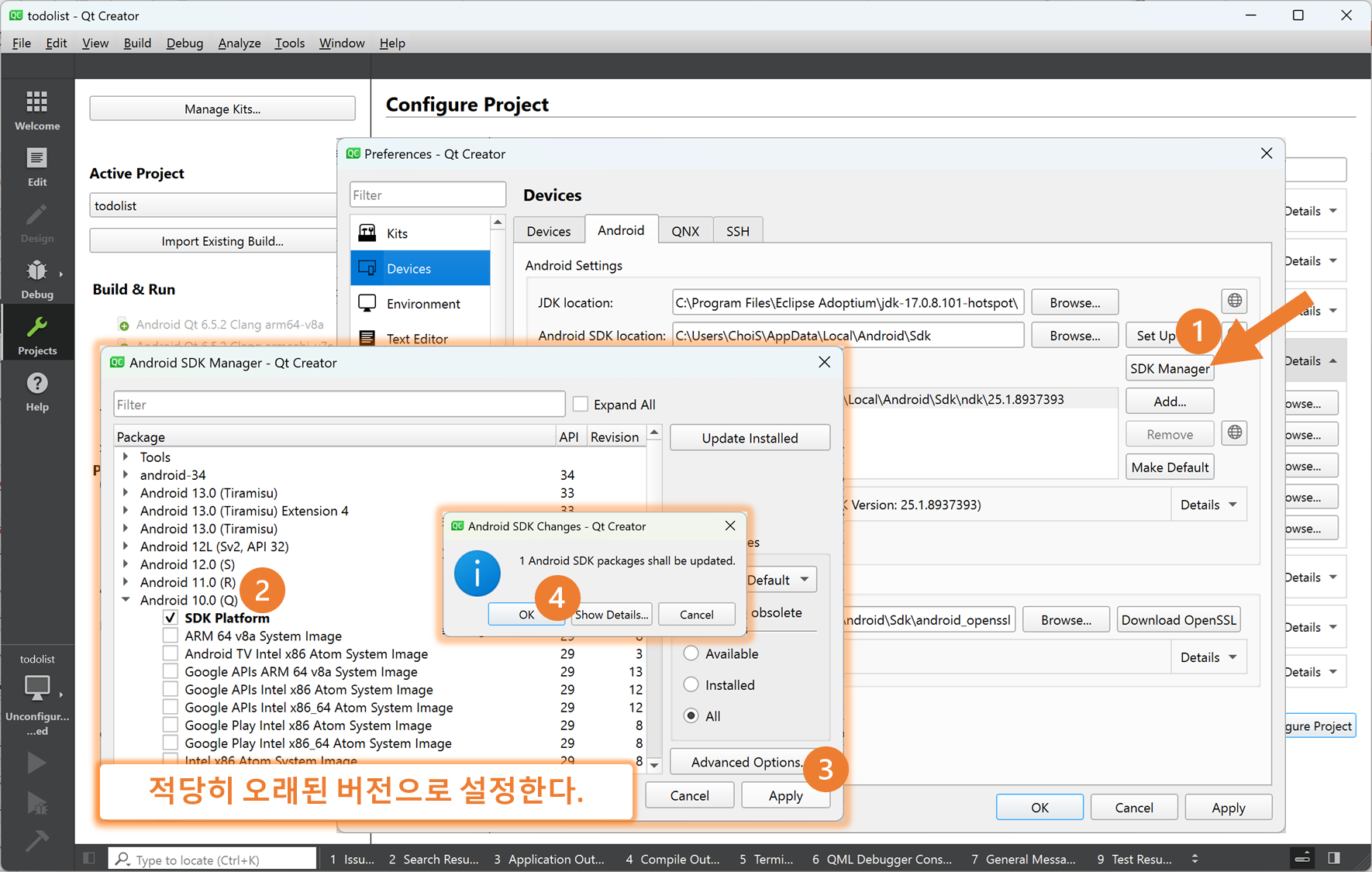 2. Qt Creator 에서 JDK, SDK, NDK 설정 (윈도우 or 우분투)