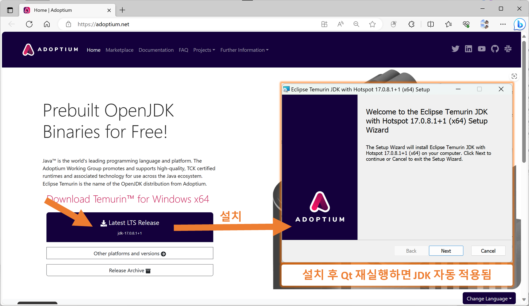 윈도우에서 설정은 자동으로 진행되어 상태적으로 쉬운 편이다.