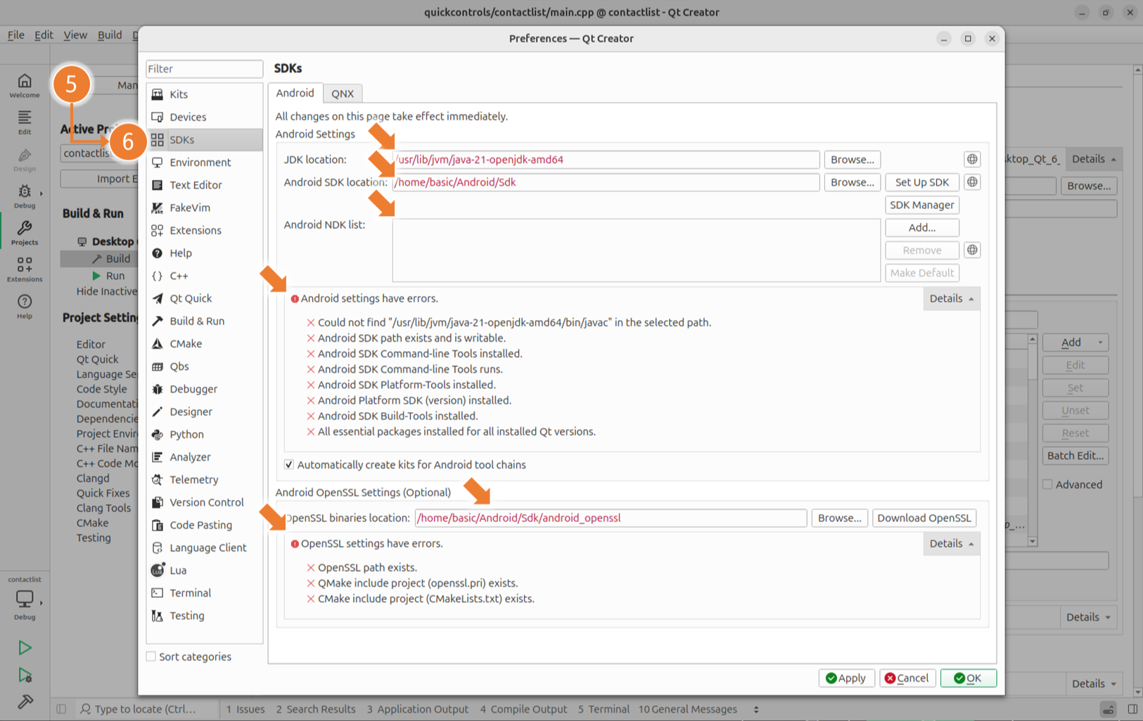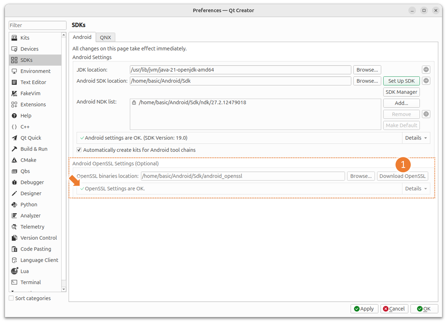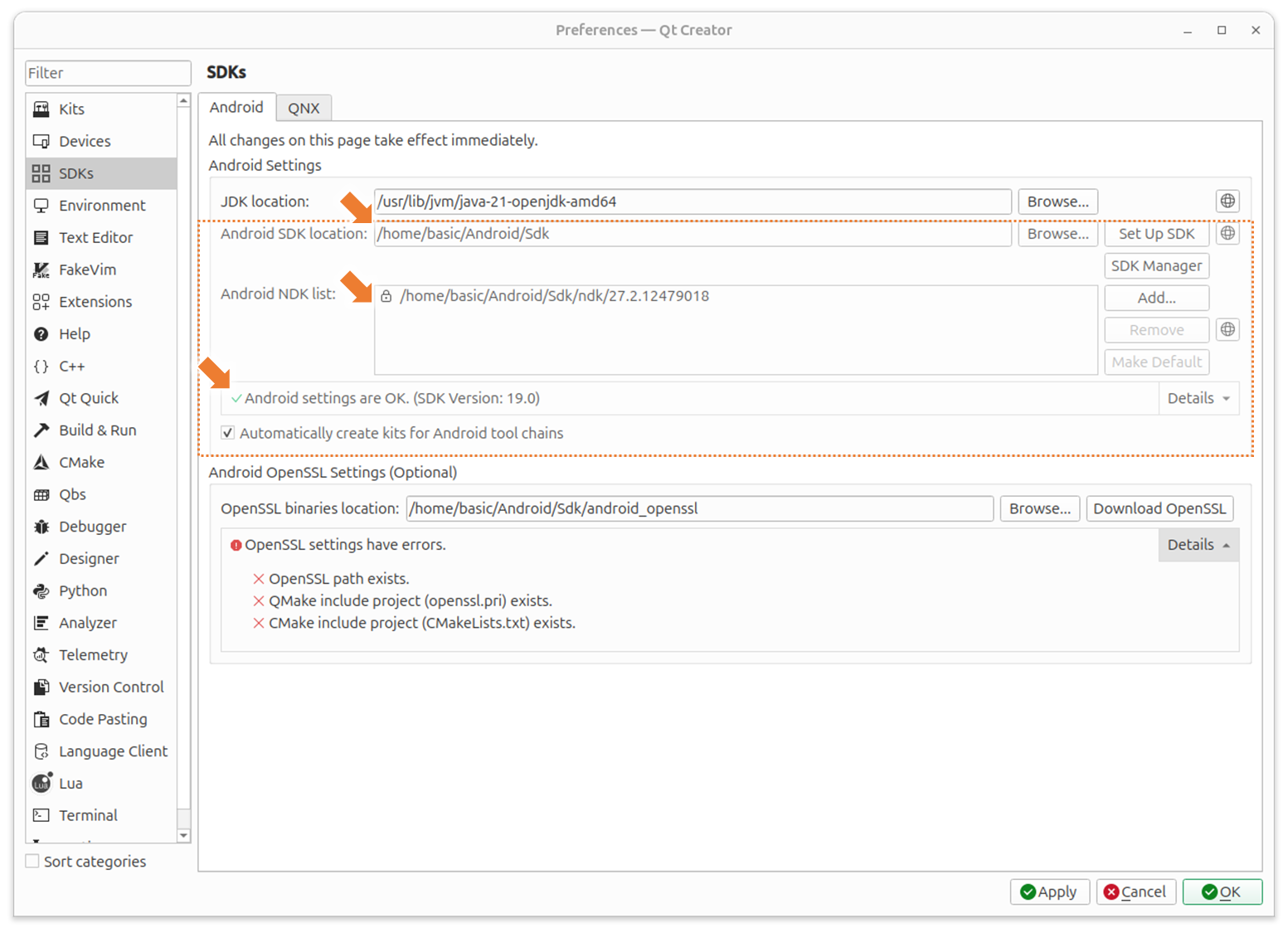 2. Qt Creator 에서 SDK 설정 (우분투)