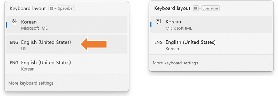 ⑦ 입력 레이아웃에서 English(US) 가 삭제된다.