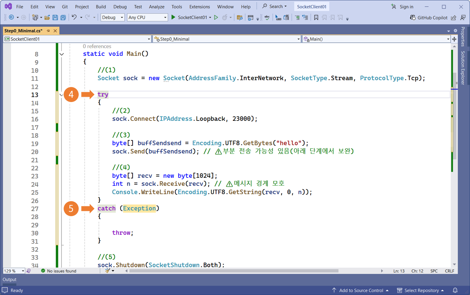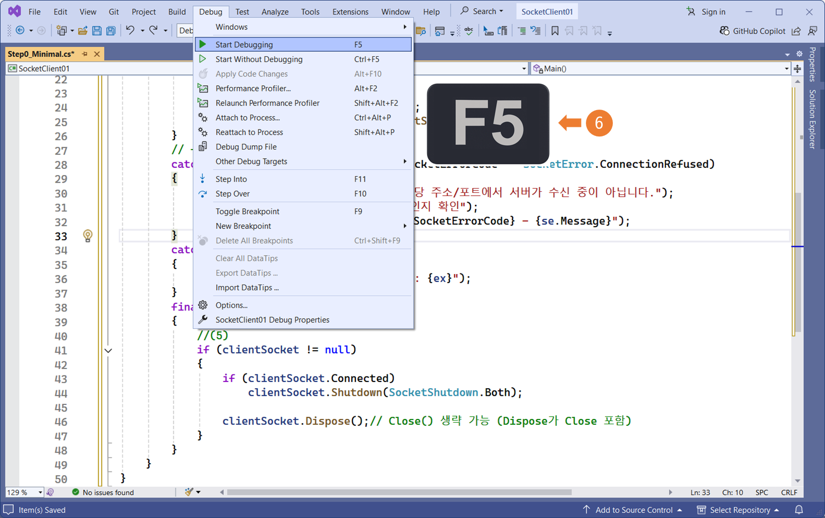 clientSocket.Dispose();// Close() 생략 가능 (Dispose가 Close 포함)
