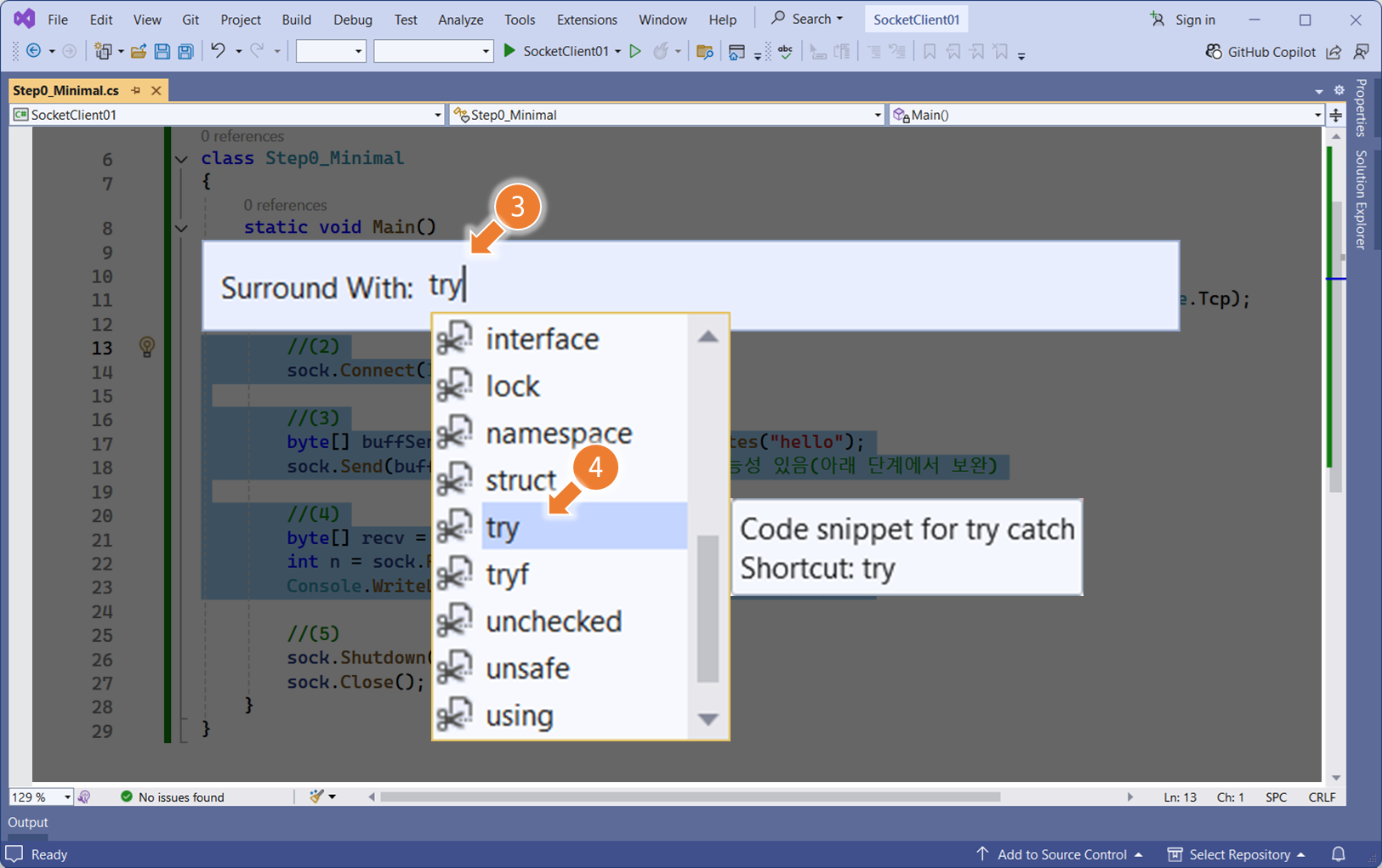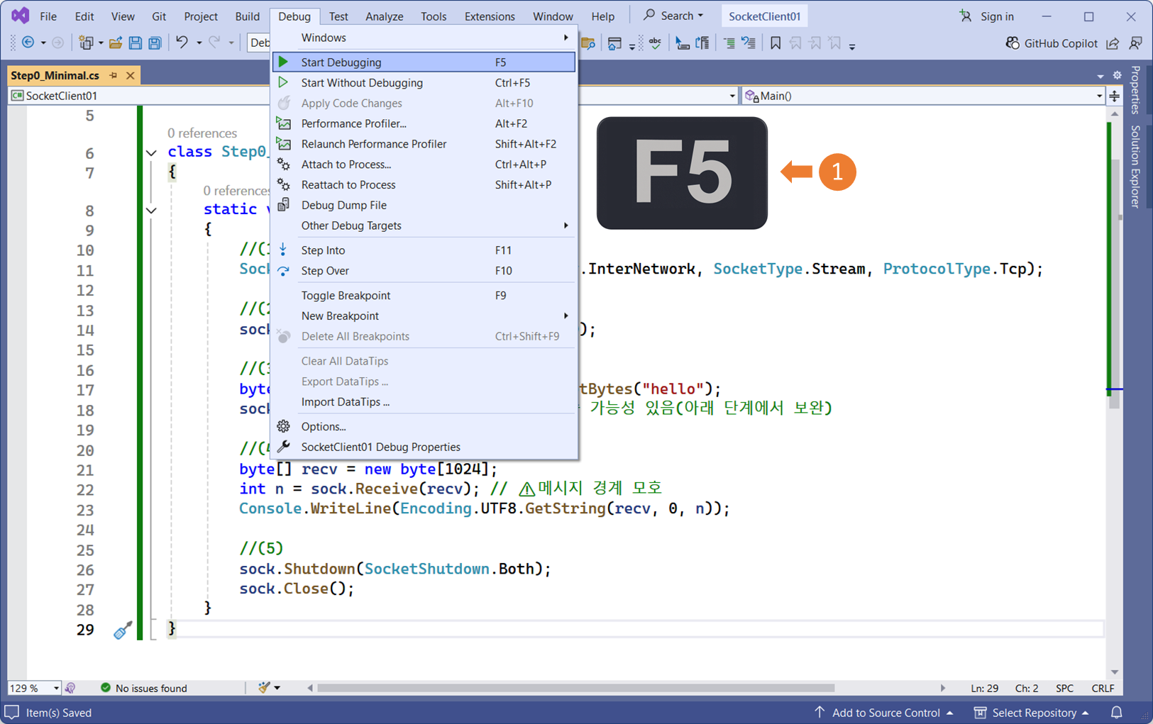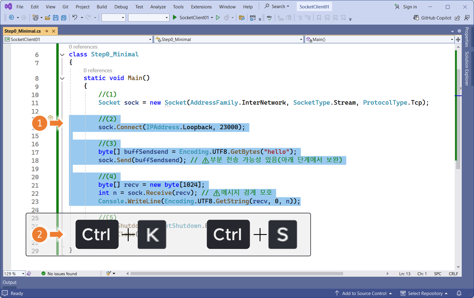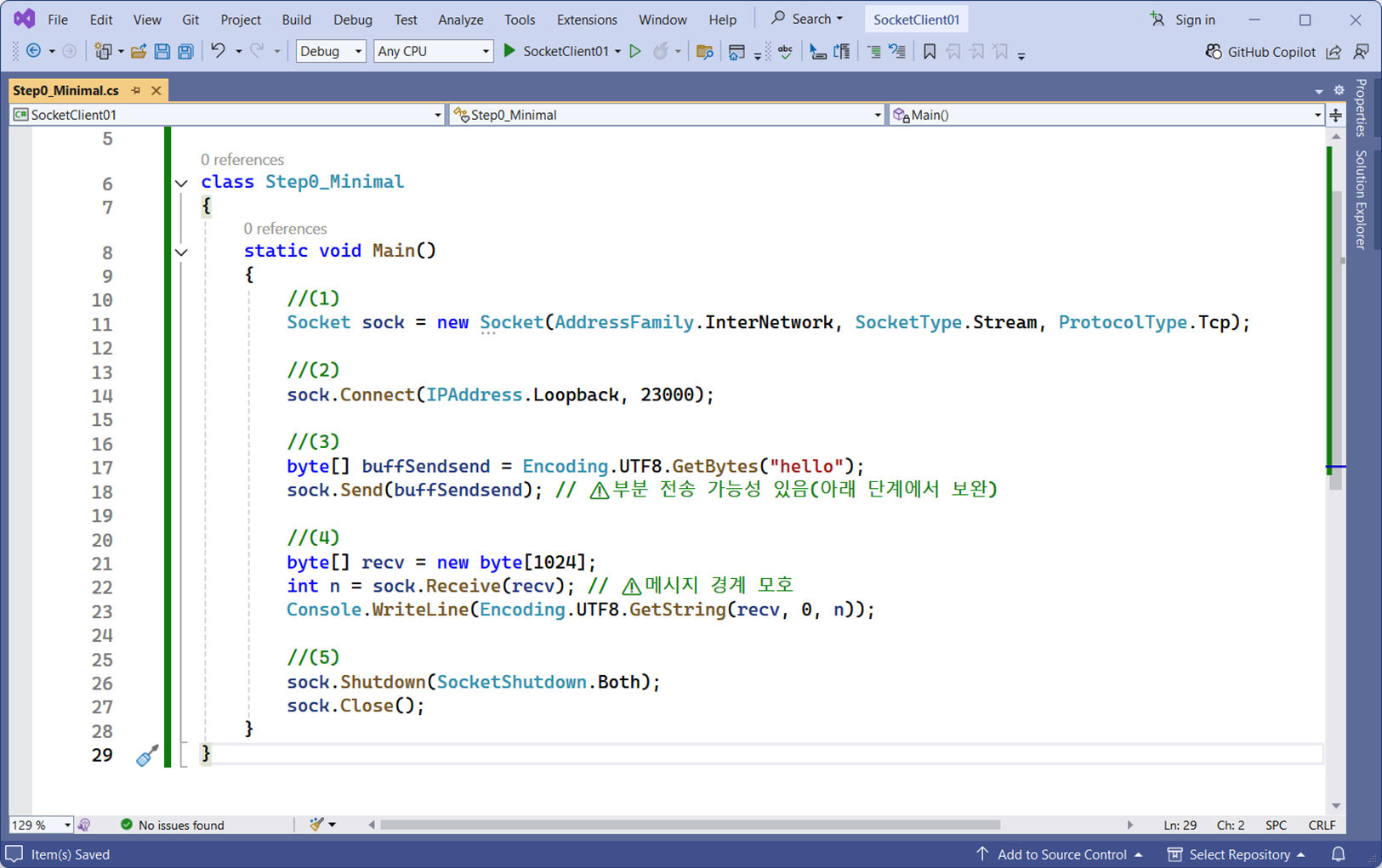 Console.WriteLine("*** 소켓 클라이언트 시작 예제에 오신 것을 환영합니다. ***");
