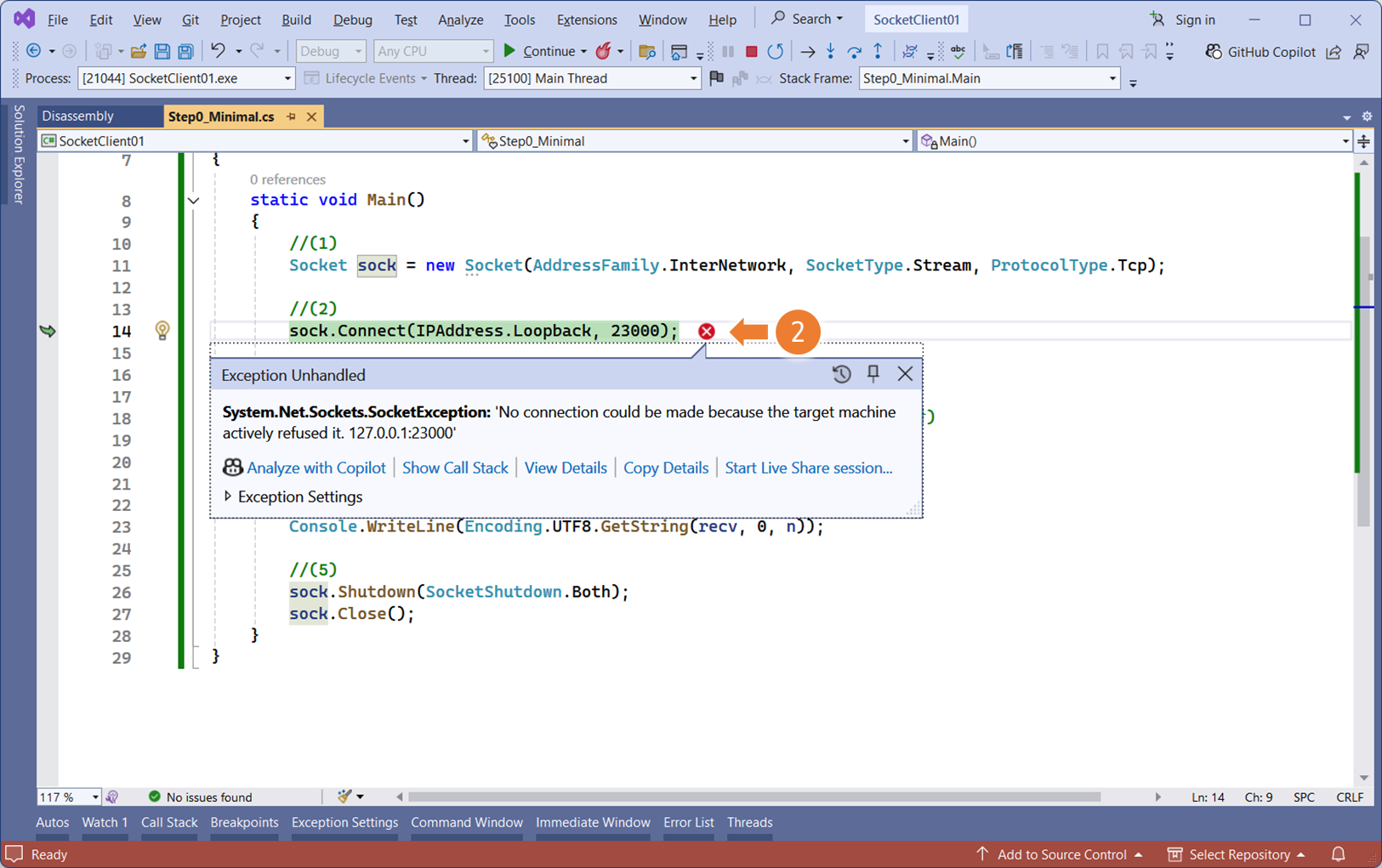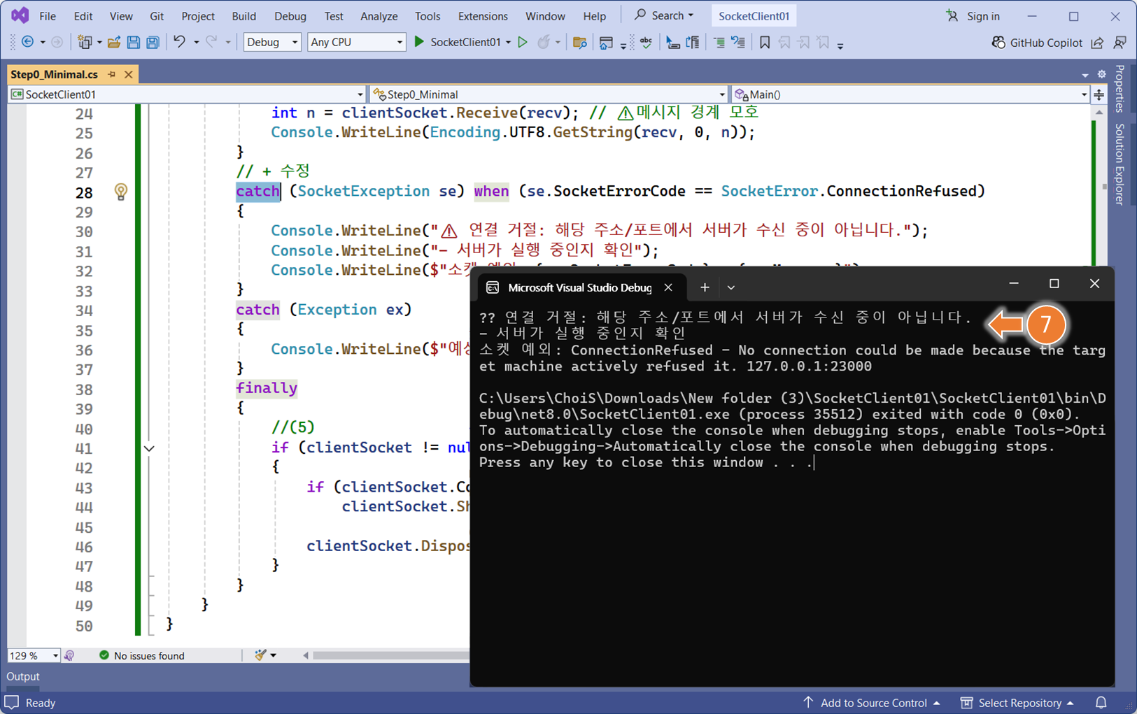Console.WriteLine("⚠️ 연결 거절: 해당 주소/포트에서 서버가 수신 중이 아닙니다.");