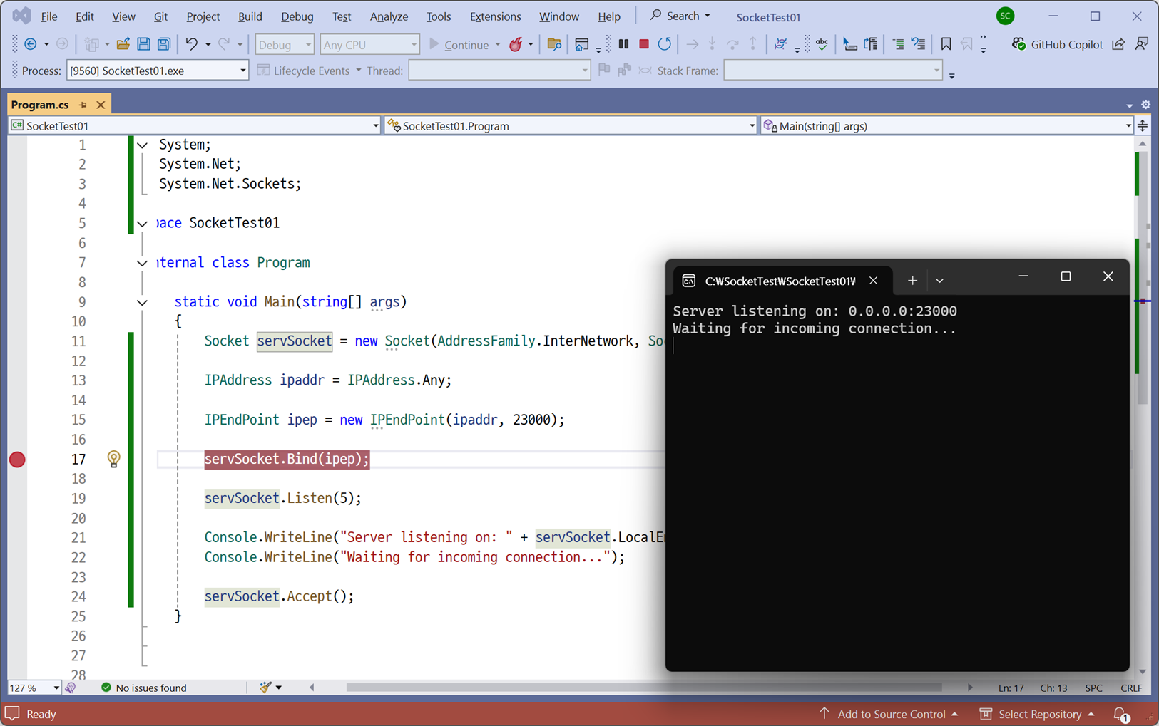Console.WriteLine("Client connected. " + connSocket.ToString() + " - IP End Point: " + connSocket.RemoteEndPoint?.ToString());