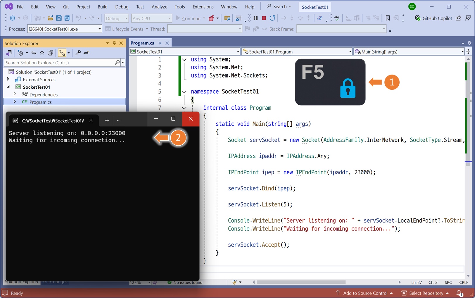 Console.WriteLine("Server listening on: " + servSocket.LocalEndPoint?.ToString());