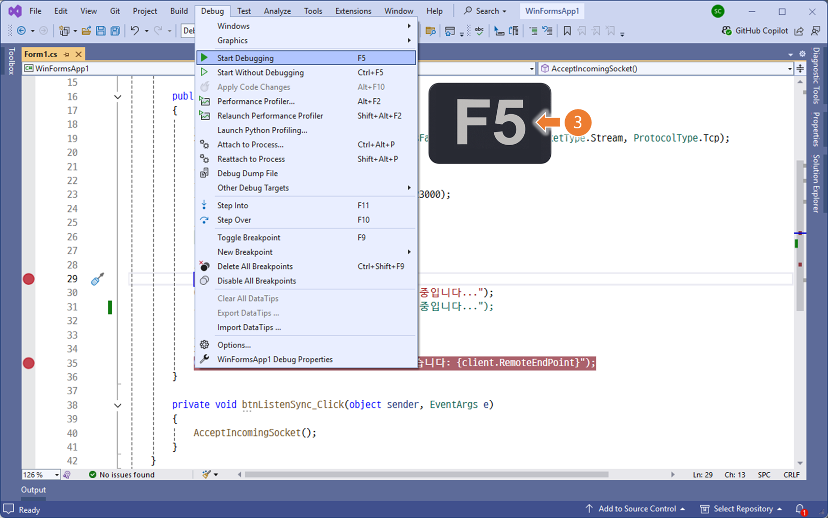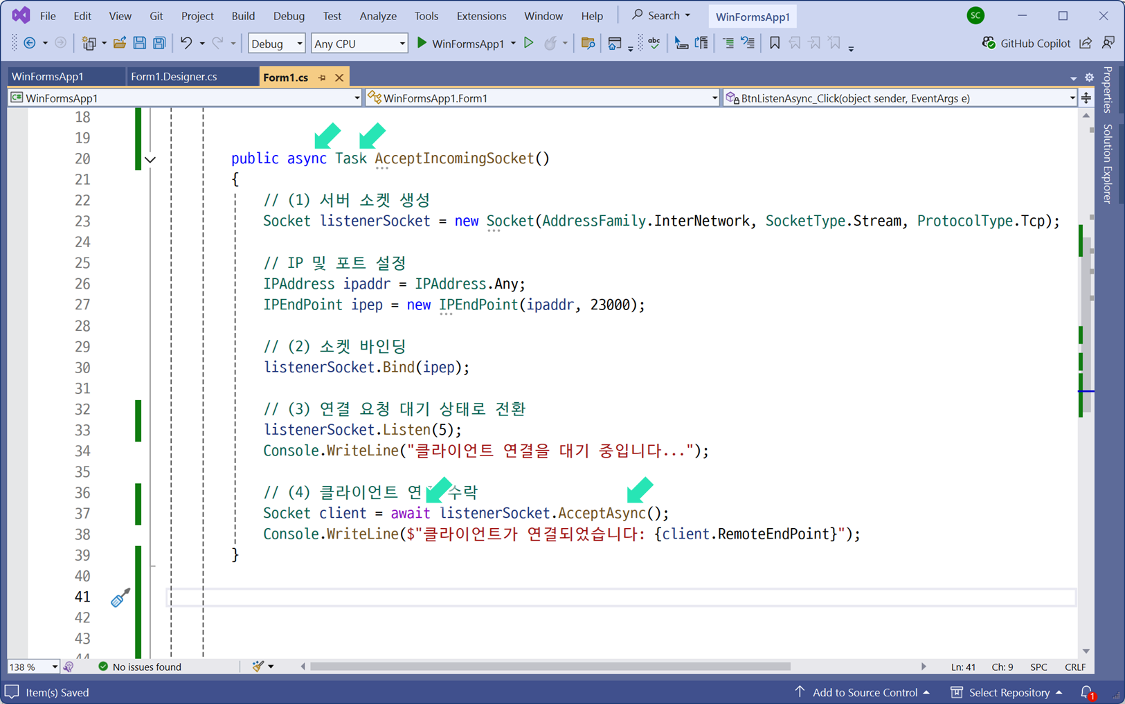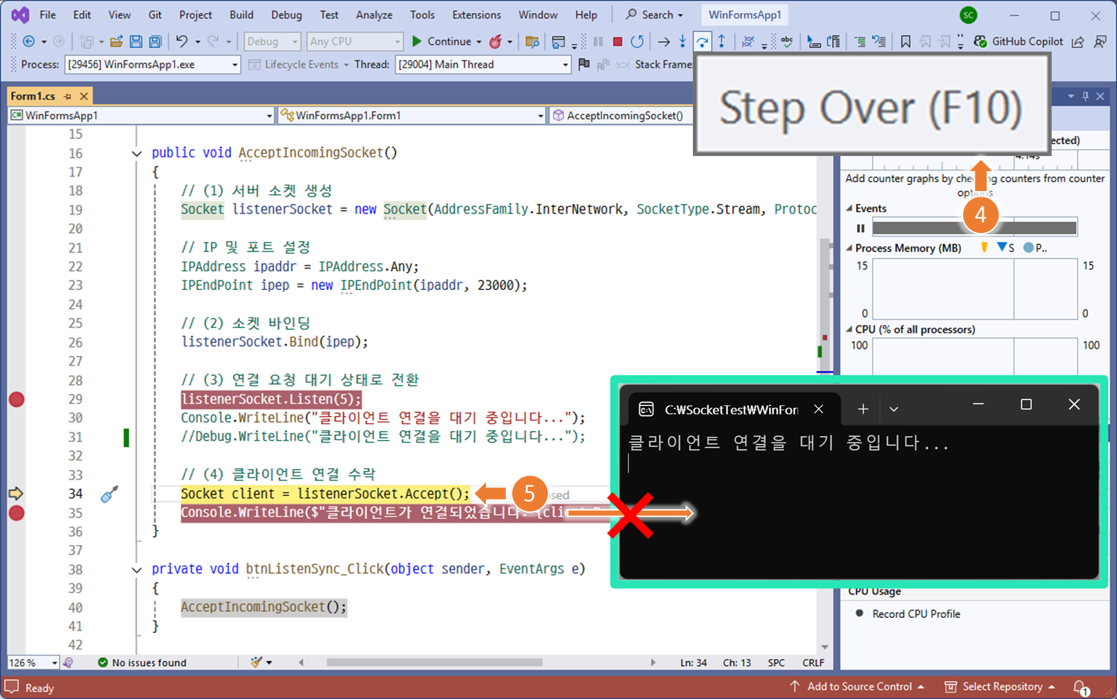 //Debug.WriteLine("클라이언트 연결을 대기 중입니다...");