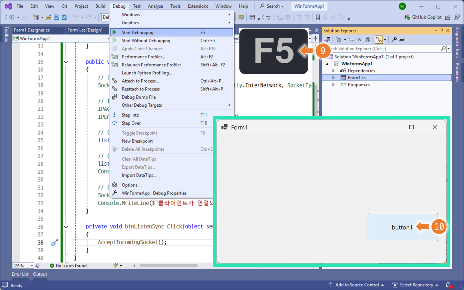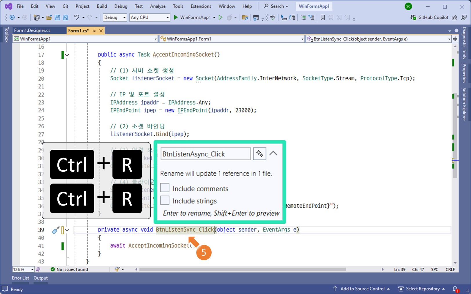 listenerSocket.Listen(5);
