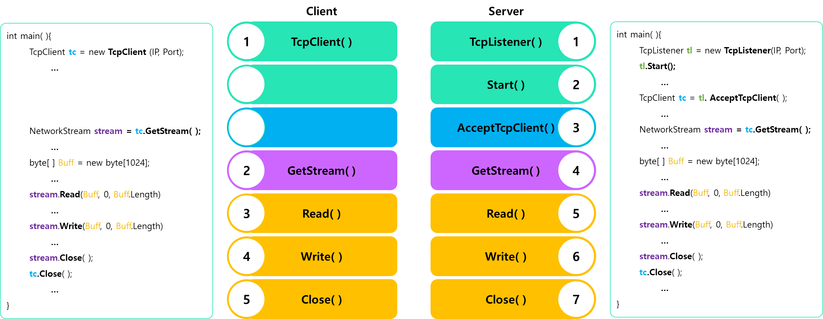 // TcpClient 객체에서 TCP 네트워크 스트림을 가져와서 사용하도록 한다