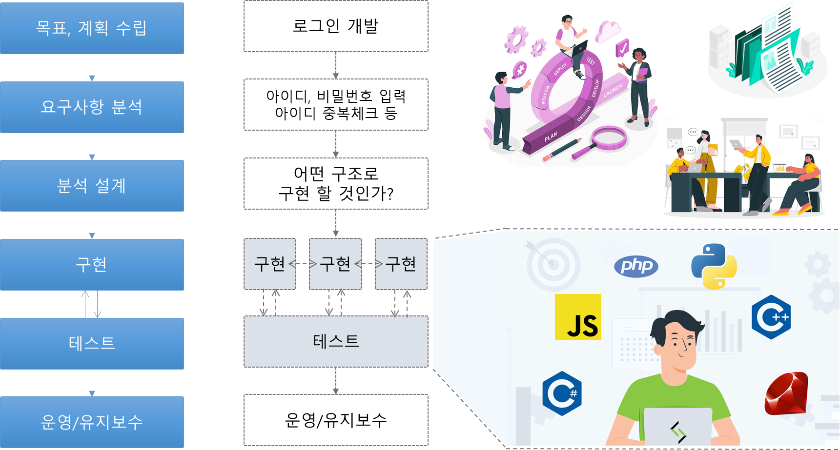 - 소프트웨어 개발이란, "컴퓨터의 동작 순서(명령문)를 문서화 하는 과정"입니다.