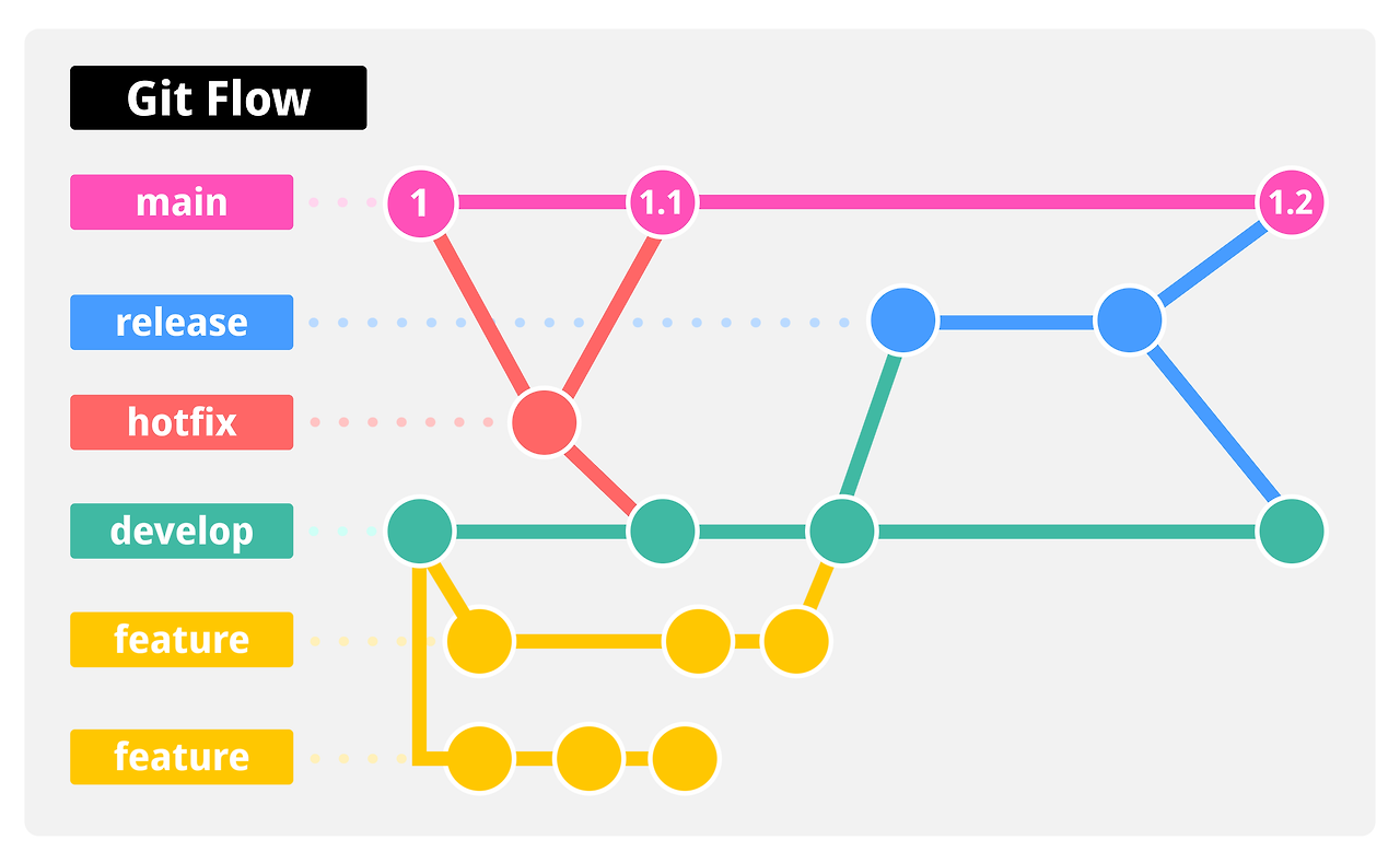이는 하나의 흐름(메인 브랜치, master, main, origin)을 가집니다.