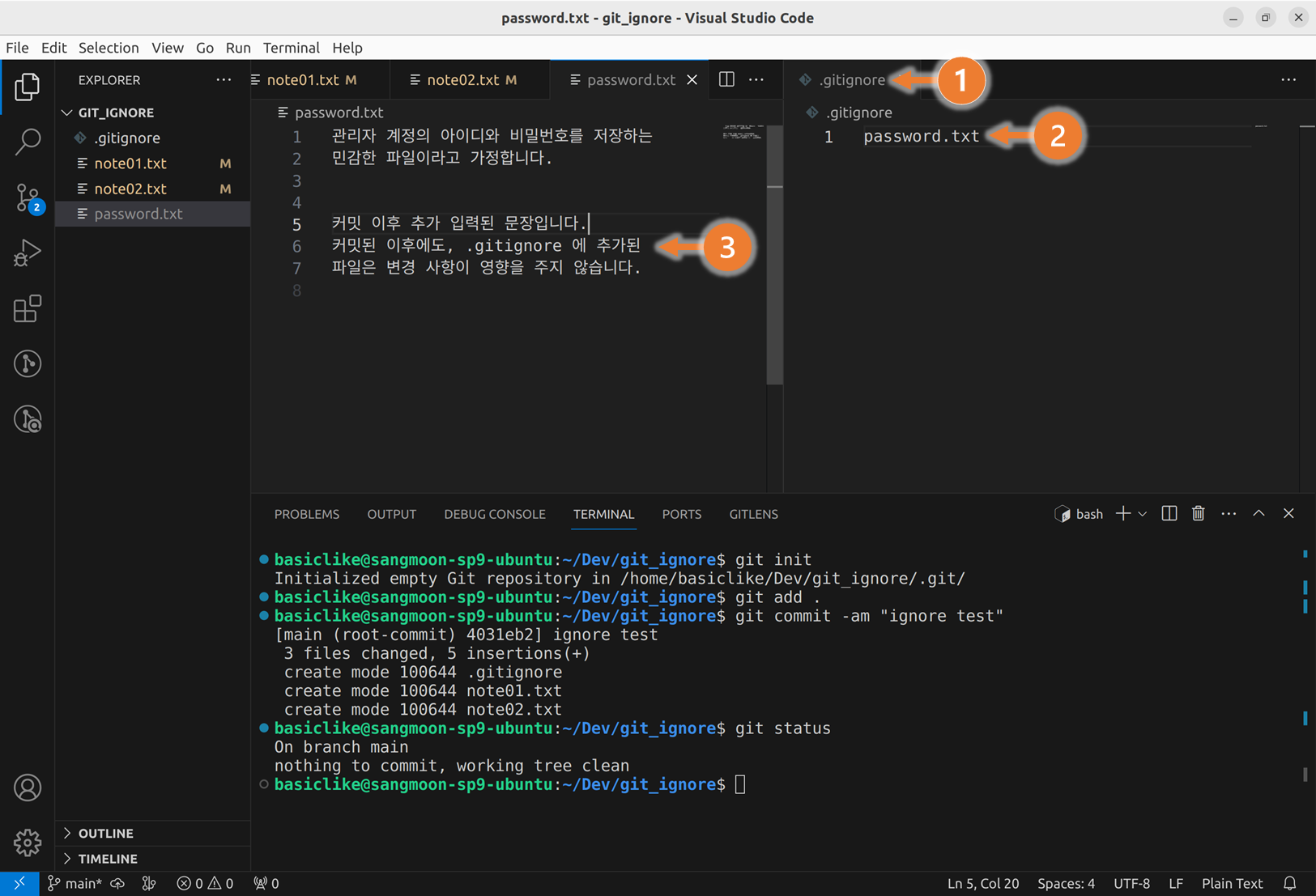 ③ 제외된 파일/폴더는 변경사항이 있더라도, git 에 반영되지 않습니다.