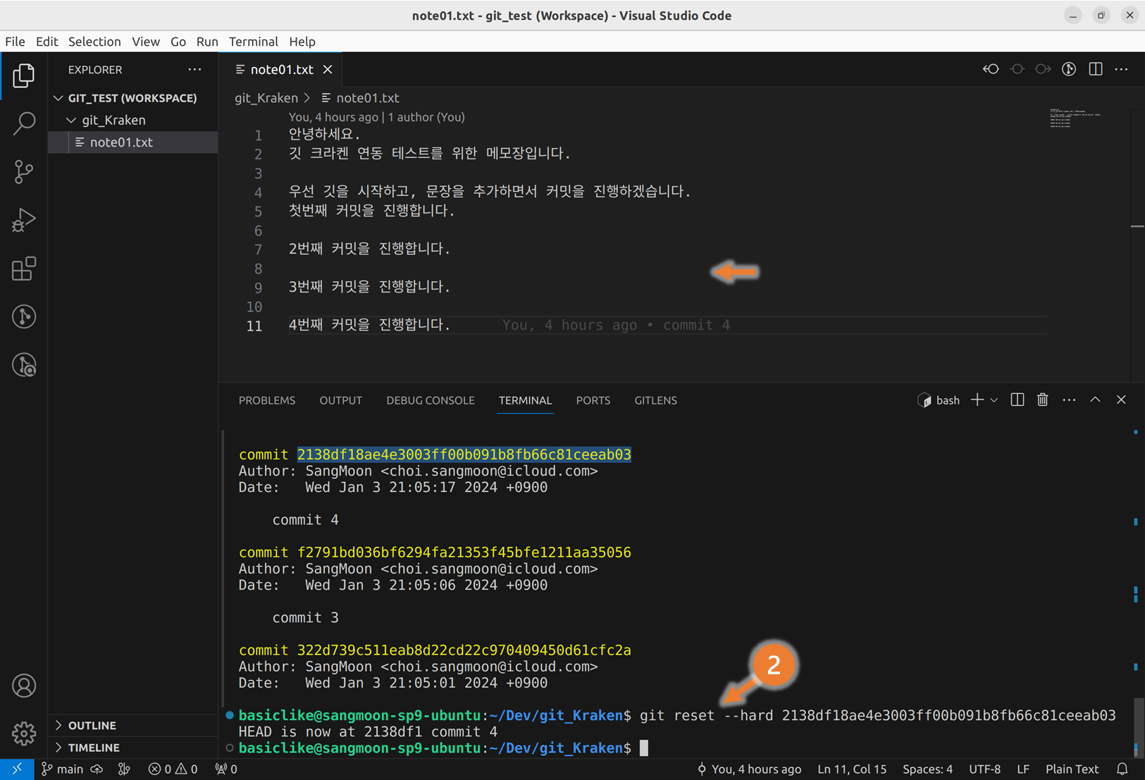 - 커밋의 뜻인 "~를 적어 두다" 를 기반으로 해석하면, 과거의 특정 커밋 시점으로 다시 작성되는 것입니다.